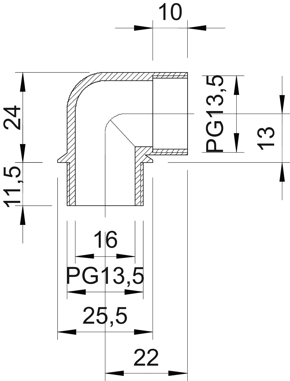 Description du produitRaccord coudé avec filetages femelles et mâles PG selon DIN 40430.
