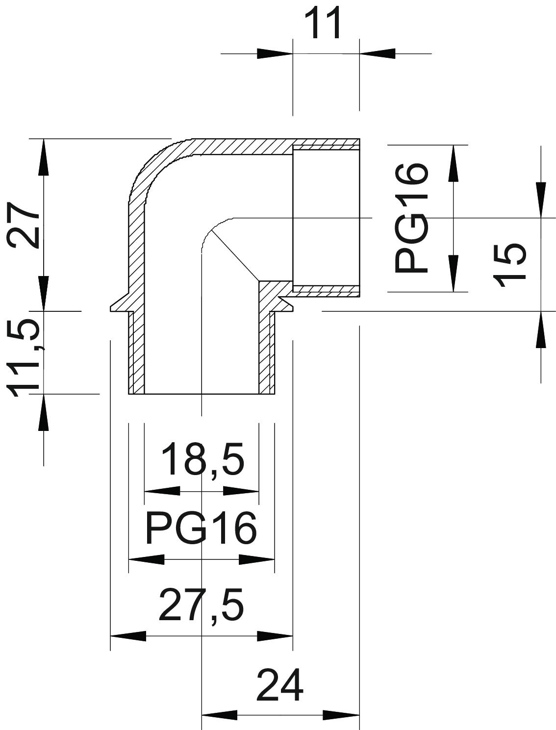 Description du produitRaccord coudé avec filetages femelles et mâles PG selon DIN 40430.