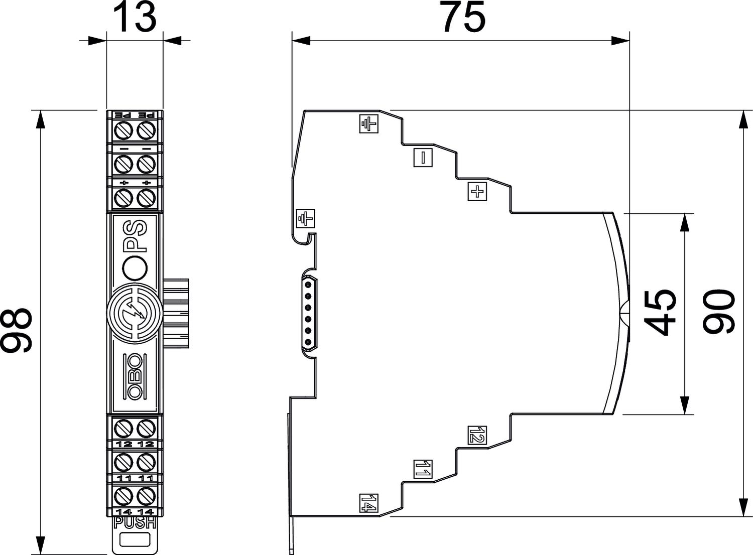 Contact de télécommunication oui Dimension 5V Empreinte CO2 (GWP) du berceau à la porte 0,297 kg CO2e / 1 Pièce Hauteur 98 mm Indice de protection IP20 Largeur 13 mm Longueur 75 mm Mise à la terre par : Circuit de raccordement Montage Entrée/sortie Bornes à vis Plage de températures d’utilisation max. 80 °C Plage de températures d’utilisation min. -40 °C Raccordement du blindage disponible non Section de raccordement flexible max. 1,5 mm² Section de raccordement flexible min. 0,14 mm² Section de raccordement multifilaire max. 2,5 mm² Section de raccordement multifilaire min. 0,14 mm² Section de raccordement rigide max. 2,5 mm² Section de raccordement rigide min. 0,14 mm² Signalisation sur l'appareil optique - Tous les types