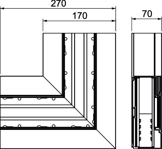 Changement de direction vertical convexe Couleur aluminium Dimension 70x170x270 Empreinte CO2 (GWP) du berceau à la porte 25,7126 kg CO2e / 1 Pièce Étrier de retenue de câble non Film de protection oui Hauteur 70 mm Indice de protection IP30 Indice de protection code IK IK07 Largeur 170 mm Largeur de la partie supérieure 79 mm Longueur 270 mm Matériau Aluminium Modèle Socle Nombre de parties supérieures 1 Perforation de montage dans le fond oui Plage de températures d’utilisation max. 60 °C Plage de températures d’utilisation min. -5 °C pour hauteur de goulotte 70 mm pour largeur de goulotte 170 mm Raccord de conduit non Sans halogène oui Surface anodisé Symétrique non Traitement antibactérien non Type de montage de la couvercle à l'intérieur Zone d’angle min. 90 mm - Tous les types