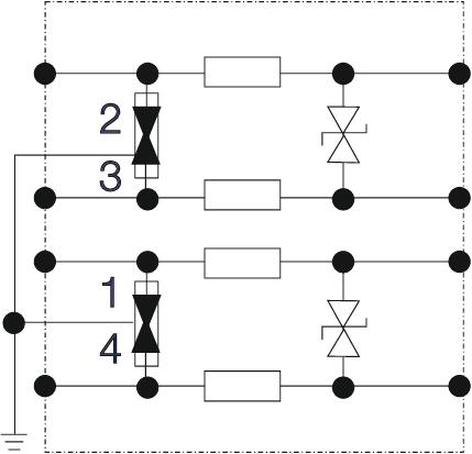 Affaiblissement d’insertion (insertion loss) ≤3 dB Capacité (ligne/ligne) <500 pF Capacité (ligne/terre) <20 pF Connectique RJ11 Courant de charge nominal CA 0,2 A Courant de charge nominal CC 0,3 A Courant de choc de décharge total (10/350) 1,5 kA Courant de décharge total (8/20) 4 kA Dimension 170V Empreinte CO2 (GWP) du berceau à la porte 1,5602 kg CO2e / 1 Pièce Fréquence limite 12 MHz Indice de protection IP40 Kategorie Type 1+2+3 / D1+C2+C1 Mise à la terre par : Circuit de raccordement Modèle Protection combinée, 4 fils Niveau de protection (asym.) pour 1 kV/µs C3 <245 Niveau de protection fil/fil <300 V Niveau de protection fil/terre <600 V Nombre de pôles 4 Norme de contrôle CEI 61643-21 Plage de températures d’utilisation max. 80 °C Plage de températures d’utilisation min. -40 °C Résistance au courant de choc fil - fil C1: 1 kV / 0,5 kA (8/20) Résistance au courant de choc fil - terre C2: 2 kV / 1 kA (8/20) Résistance d’isolation > 34 MΩ Résistance série par voie 8,2 Ω ± 10 % Signalisation sur l'appareil sans SPD selon CEI 61643-21 Classe I+II+III / D1+C2+C1 Tension max. permanente CA 120 V Tension max. permanente CC 170 V ZPF 0→3 - Tous les types