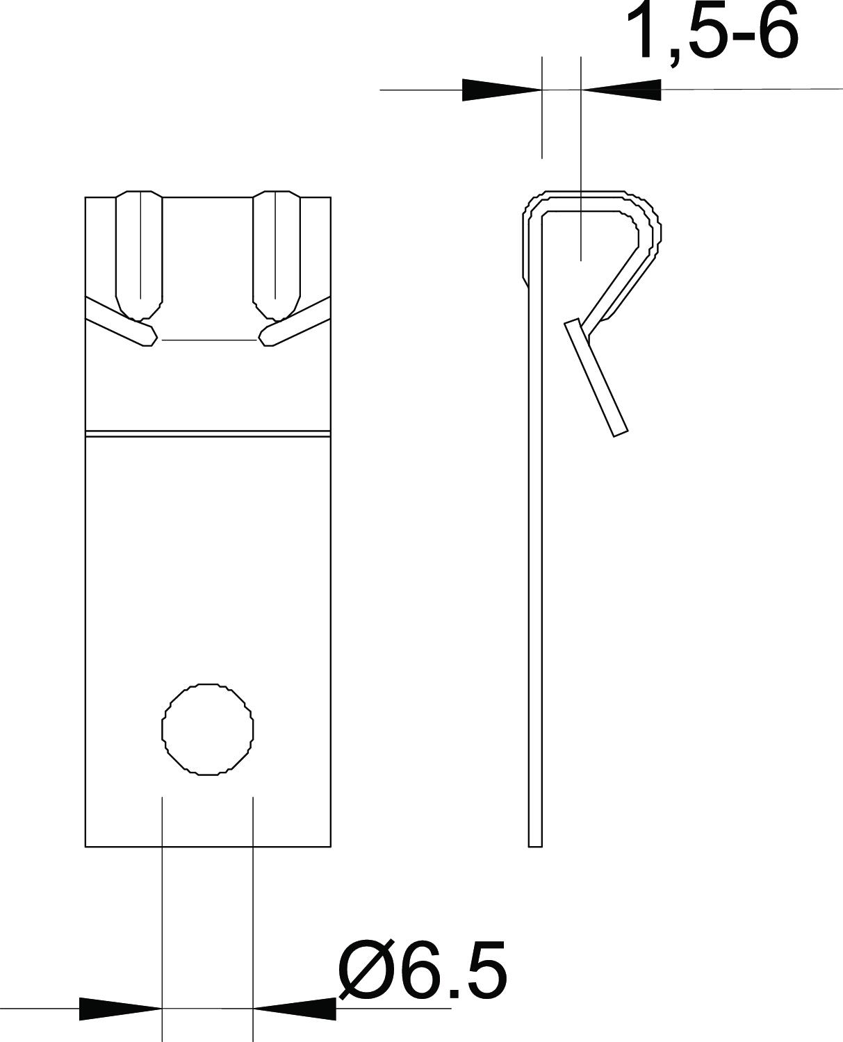 À charnière non Charge de rupture 0,72 kN Charnière ajustable non Cote L 10 mm Dimension 1,5-4mm Dimension H 52 mm Épaisseur de bride F max. 4 mm Épaisseur de bride F min. 1,5 mm Hauteur 52 mm Largeur 10 mm Matériau Acier Surface Lamelle de zinc Trou de fixation 7 mm Type de fixation Bornes - Tous les types