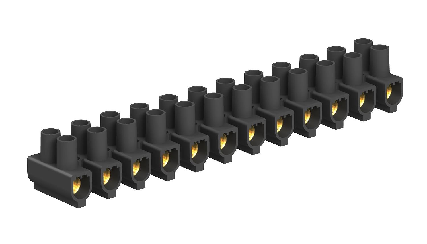 Bornes en laiton, vis en acier, galvanisées (passivation transparente), bornier à 12 pôles se composant de bornes individuelles séparables.