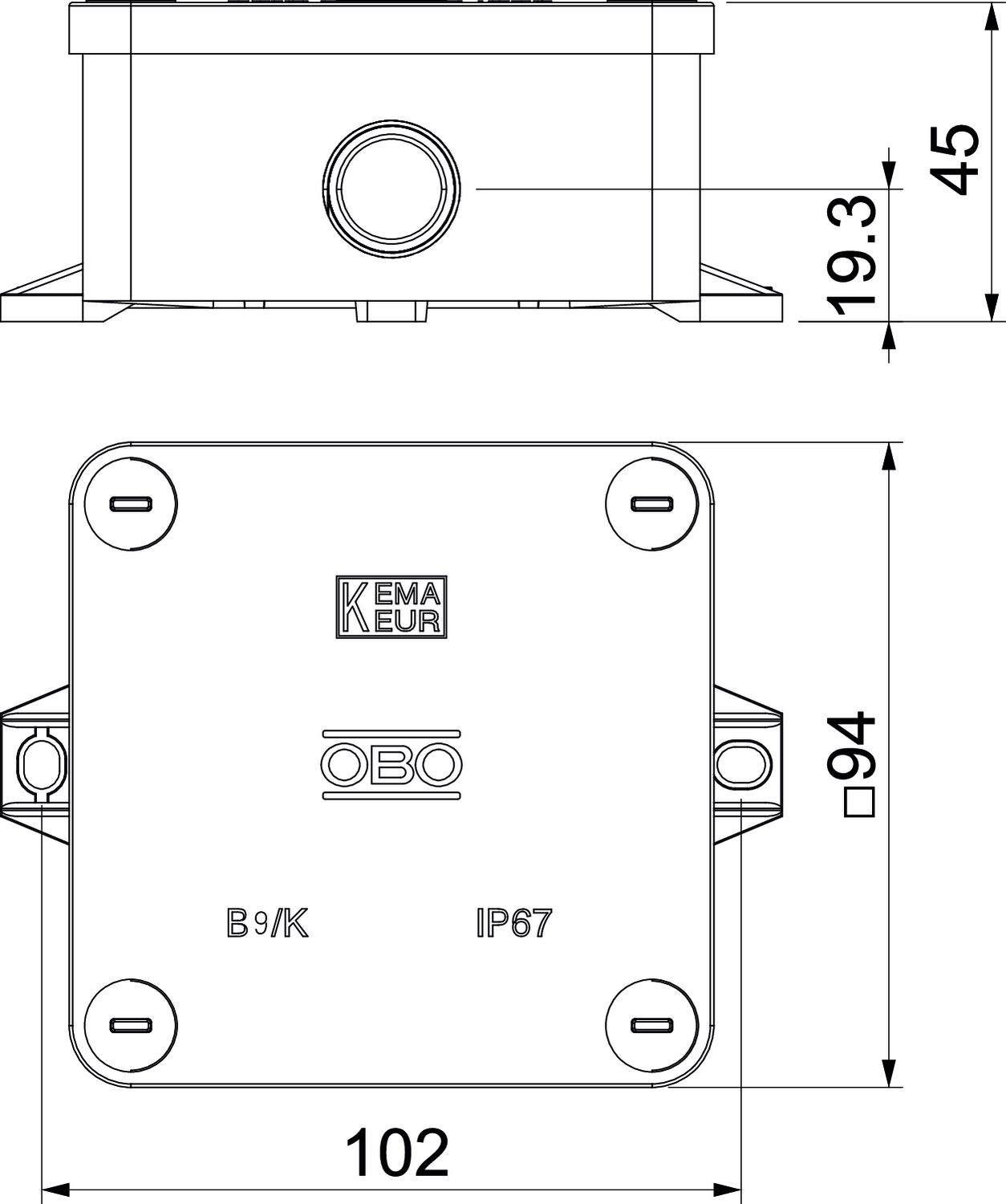 Anti-chocs non Avec blindage non Avec couvercle oui Couleur gris clair; RAL 7035 Couvercle non transparent Couvercle transparent non Dimension 94x94x45 Dimension intérieure 84x84x34 mm Emboîtable non Empreinte CO2 (GWP) du berceau à la porte 0,5548 kg CO2e / 1 Pièce Entrée par l'arrière non Fixation avec rattrapage d'aplomb oui Fixation du couvercle vissé forme carré Hauteur 45 mm Indice de protection IP67 Largeur 94 mm Longueur 94 mm Maintien en fonction sans Matériau plastique thermodurcissable "Duroplast", aminoplaste type 131.5 Modèle testé antidéflagrant non Nombre d'entrées 7 pour diamètre de tube 20 mm Pour zone explosive sans Pour zone explosive gaz sans Pour zone explosive poussières sans Résistant aux flammes selon la norme VDE 0471/DIN 695 partie 2-1, température de test 750 °C Résistant aux intempéries non Sans halogène oui Section nominale max. 70 mm² Tension d'isolation de mesure Ui 400 V Tension nominale 400 V Type d'entrée Câbles Type du passage sur le boîtier Filetage et empreinte défonçable Type d’entrée vissage - Tous les types