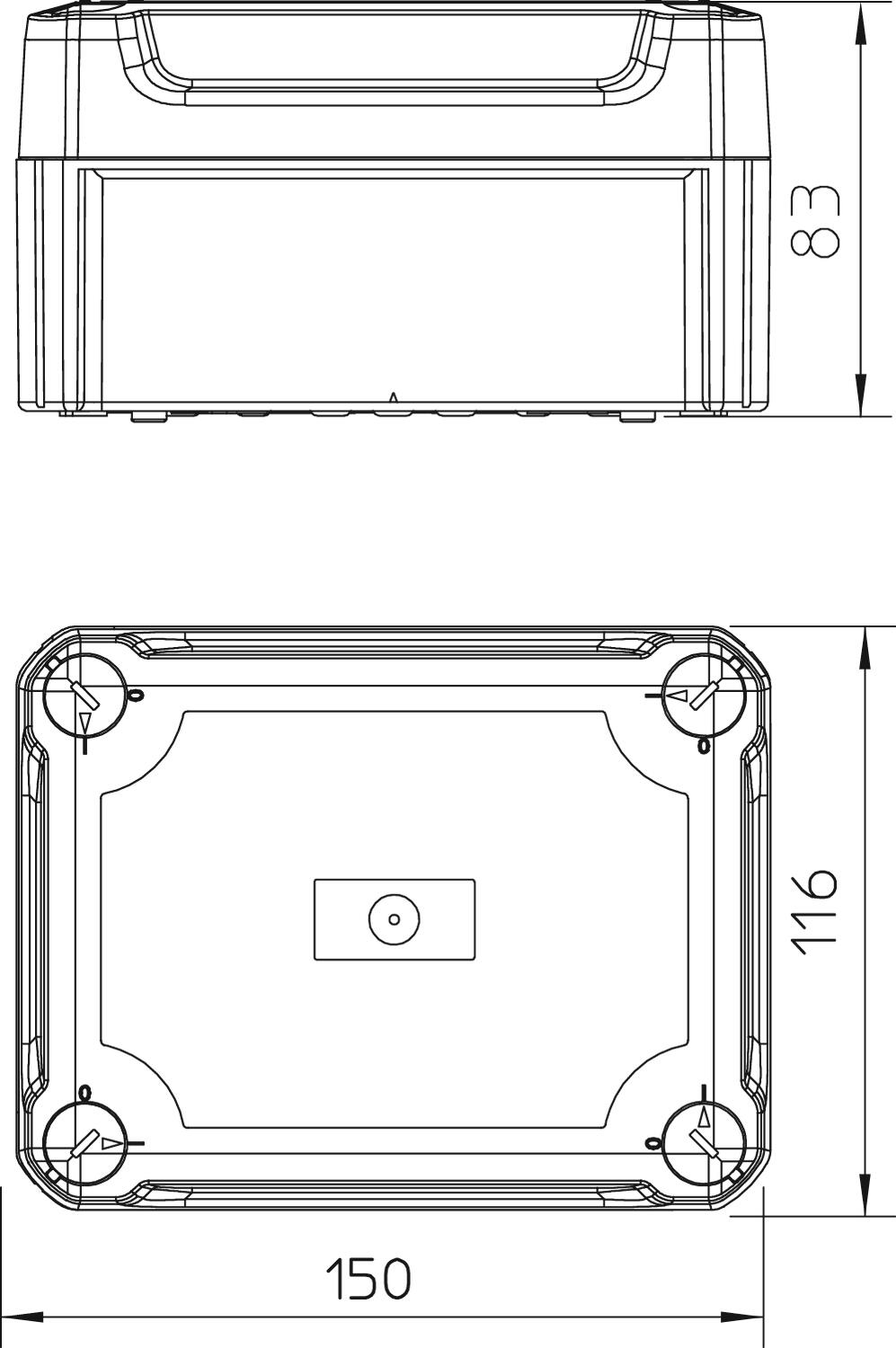 Description du produitBoite de dérivation fermé pour le raccordement des câbles et conduits en intérieur et en extérieurs protégés. Forme rectangulaire sans ouvertures. Convient pour le montage au mur / au plafond et sur des tôles de montage. Avec possibilité de fixation intérieure et de montage à travers le dôme angulaire. Couvercle haut et transparent avec fermeture rapide, plombable. Fabriqué à partir de matériaux sans halogène et résistants aux UV. rail DIN symétrique inclus.Boite de dérivation selon la norme DIN EN 60670. Ignifugé selon DIN EN 60695-2-11, Température d'essai 650 °C. Résistance aux chocs IK07 selon la norme DIN EN 50102.