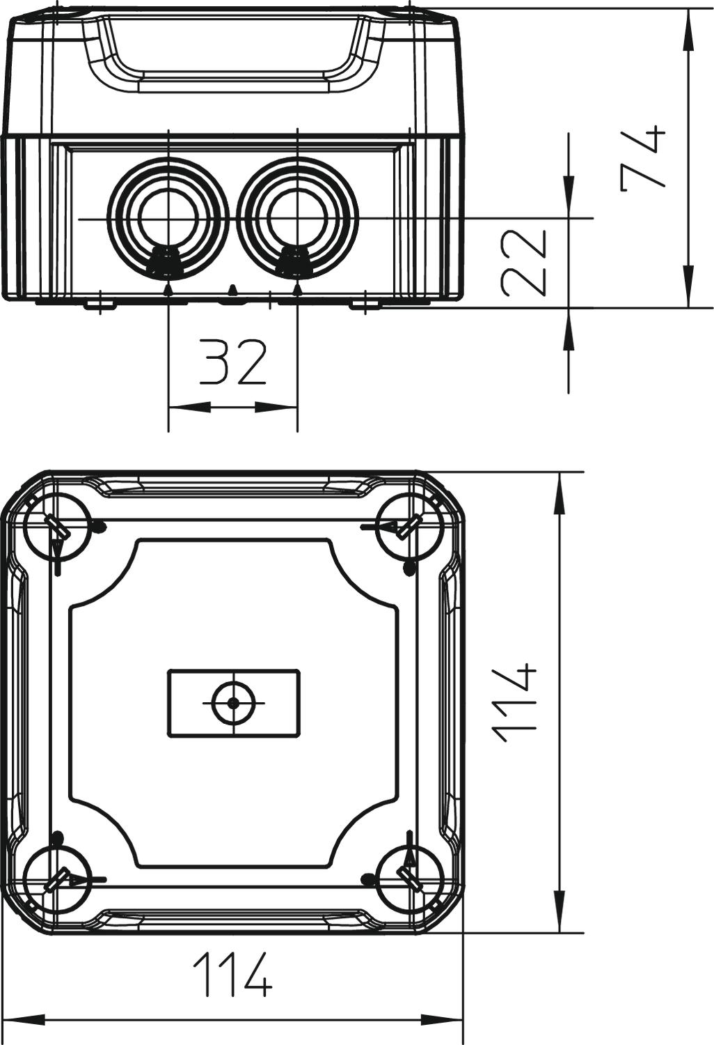 Description du produitBoite de dérivation pour le raccordement des câbles et conduits en intérieur et en extérieurs protégés. Forme carrée avec des joints d’étanchéité sur les côtés et des entrées défonçables dans le fond. Convient pour le montage au mur / au plafond et sur des tôles de montage. Avec possibilité de fixation intérieure et de montage à travers le dôme angulaire. Couvercle haut avec fermeture rapide, plombable. Fabriqué à partir de matériaux sans halogène et résistants aux UV.rail DIN symétrique inclus.Boite de dérivation selon la norme DIN EN 60670. Ignifugé selon DIN EN 60695-2-11, Température d'essai 650 °C. Résistance aux chocs IK07 selon la norme DIN EN 50102.