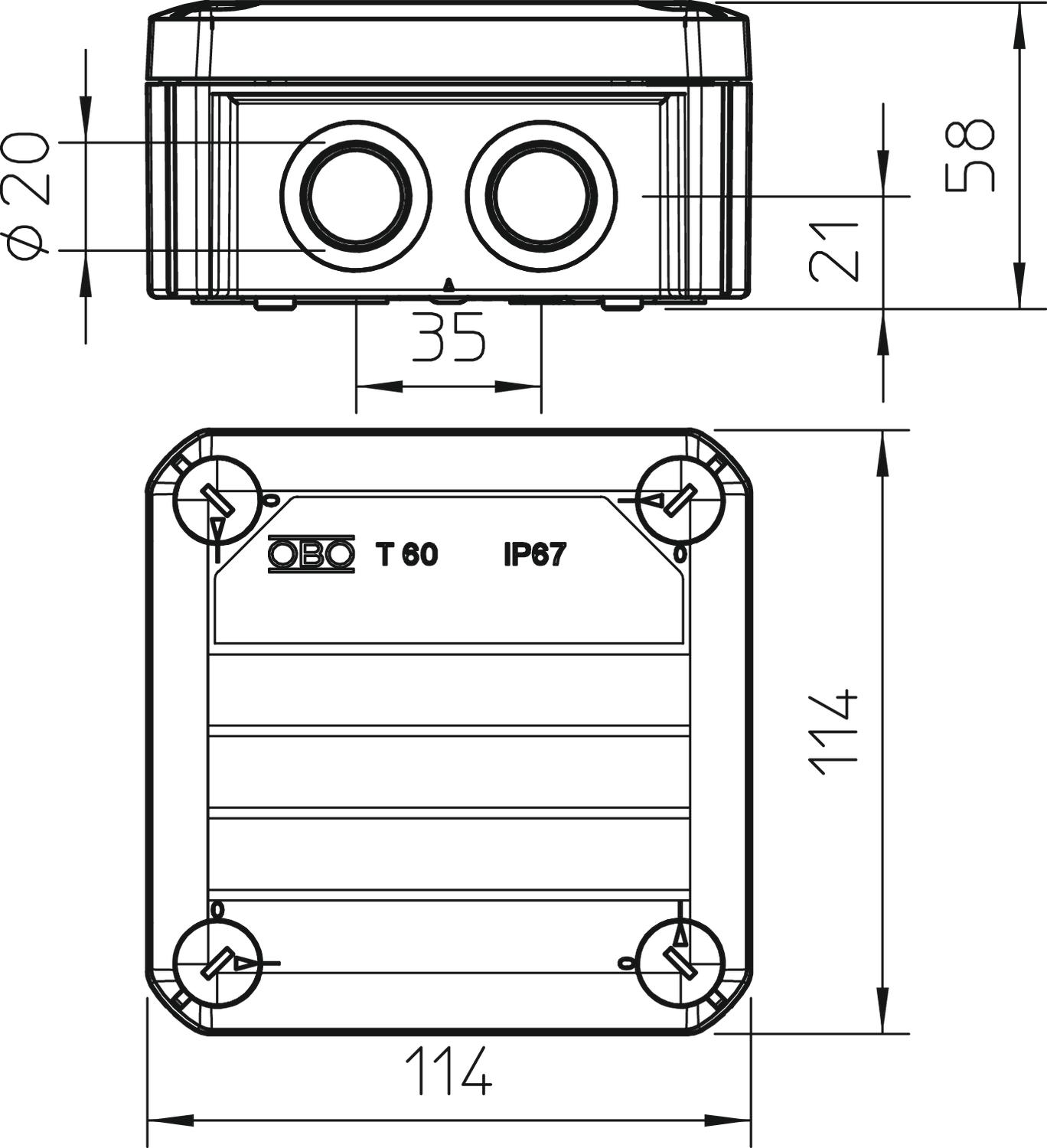 Description du produitBoîtier de dérivation avec bornier pour le raccordement des câbles et conduites en intérieur et en extérieur protégé Forme carrée avec prédécoupes défonçables sur les côtés et dans le fond. Convient pour le montage au mur / au plafond et sur des tôles de montage. Avec possibilité de fixation intérieure et de montage à travers le dôme angulaire. Avec couvercle à encliqueter. Fabriqué à partir de matériaux sans halogène et résistants aux UV. Boite de dérivation selon la norme DIN EN 60670. Ignifugé selon DIN EN 60695-2-11, Température d'essai 650 °C. Résistance aux chocs IK07 selon la norme DIN EN 50102.