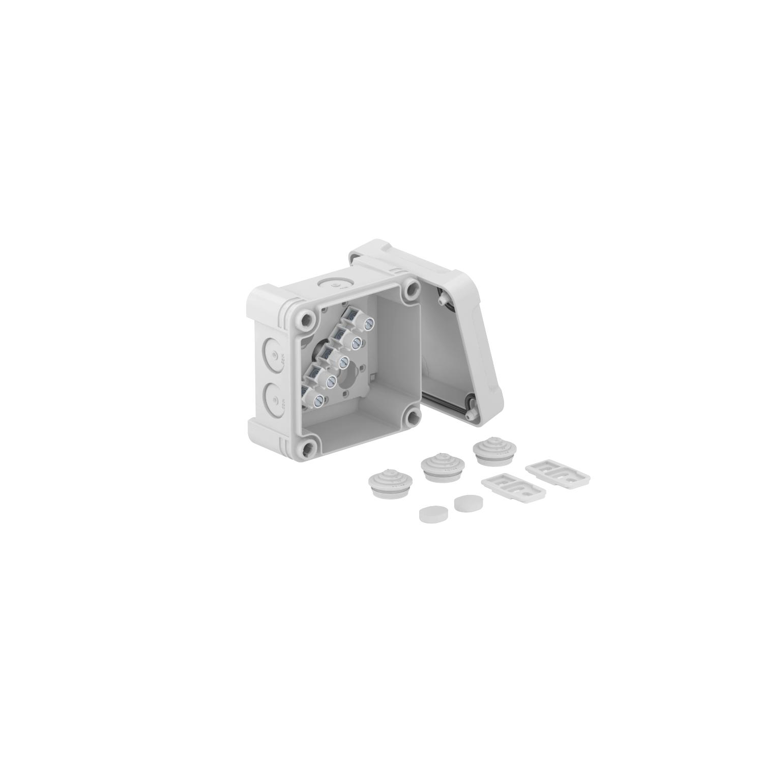 Boite de dérivation selon la norme DIN EN 60670. Ignifugé selon DIN EN 60695-2-11, Température d'essai 650°C. Résistance aux chocs IK09 selon DIN EN 50102. Indice de protection IP67 selon DIN EN 60529