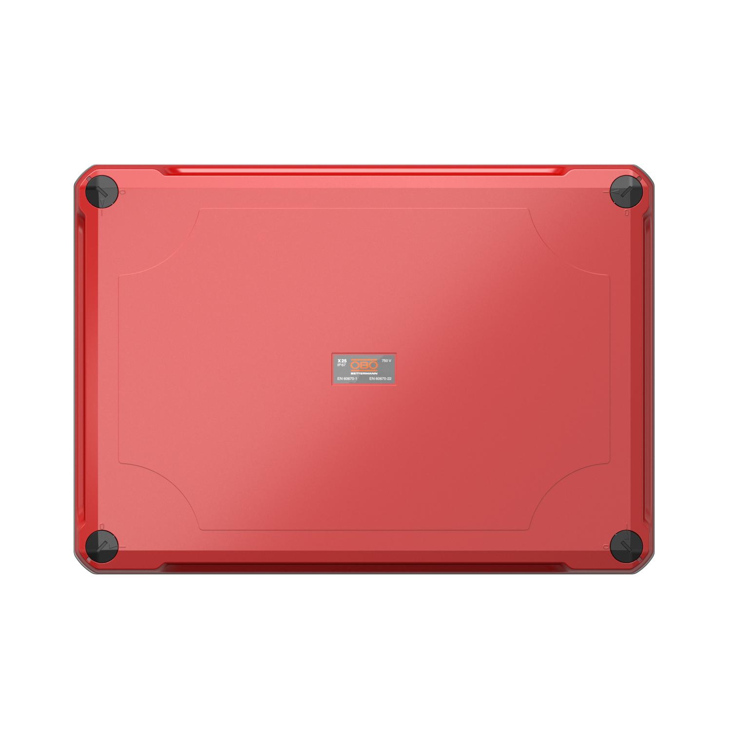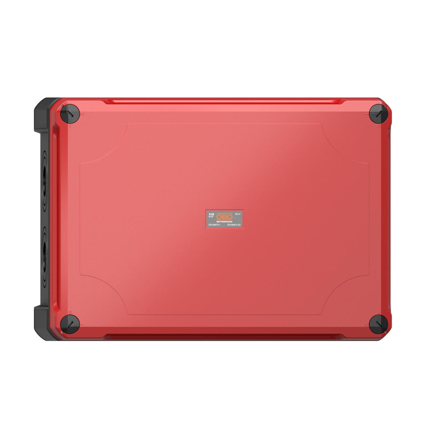 La partie inférieure est noir et le couvercle est rouge sécurité avec des éléments de fixation noirs.