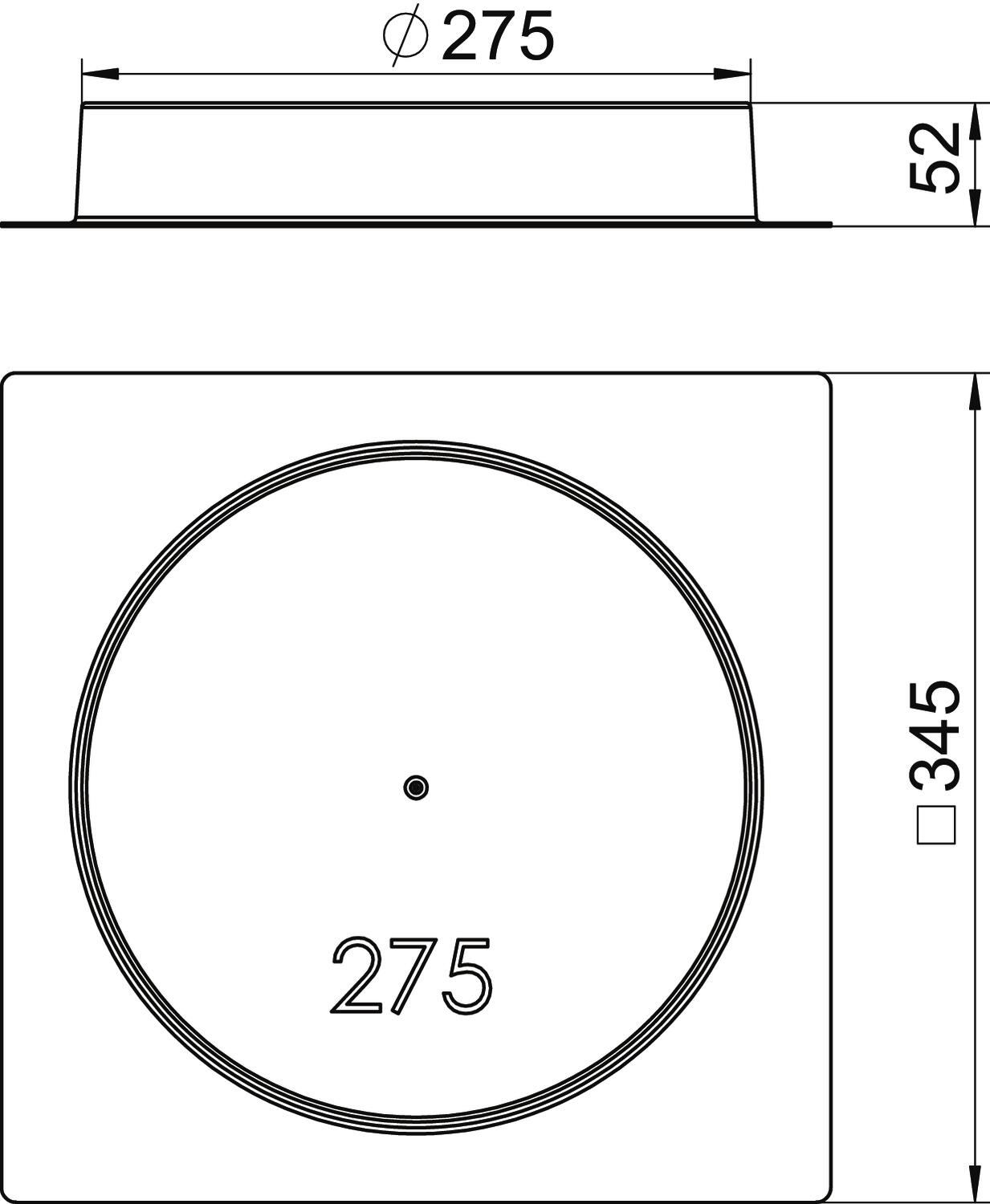 Cote d Ø 275 mm Couleur noir graphite ; RAL 9011 Diamètre 275 mm Dimension nominale pour boîtier d'appareillages R7 Empreinte CO2 (GWP) du berceau à la porte 0,5436 kg CO2e / 1 Pièce Hauteur 51,5 mm Hauteur de chape min. 50 mm Largeur 345 mm Longueur 345 mm Matériau Polystyrène Sans halogène oui - Tous les types