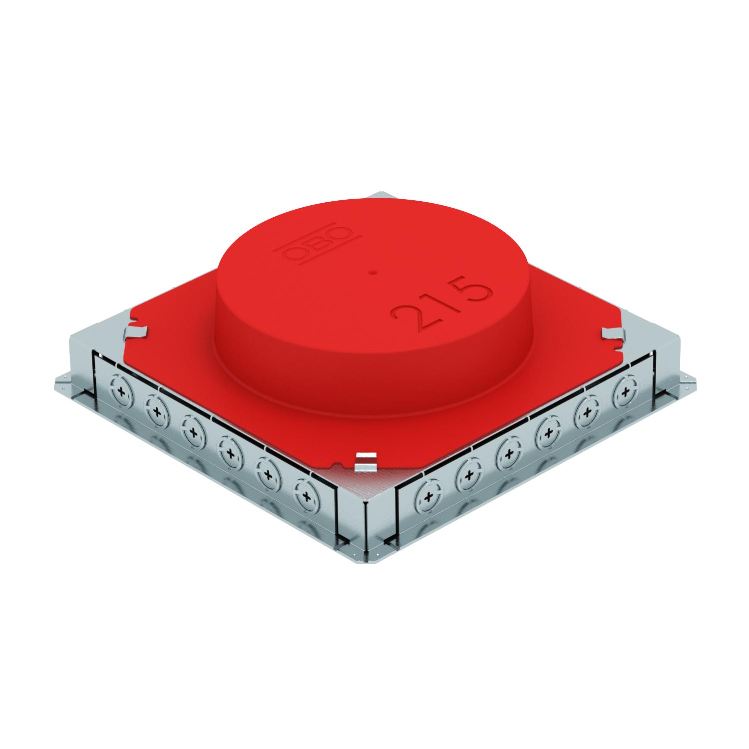 Description du produitBoîte de sol de raccordement sous plancher avec une ouverture de montage fixe et non modifiable de Ø 215 mm pour une unité d'installation R4. L'ouverture de montage est réalisée à l'aide d'un élément de coffrage compris dans la livraison. La boîte sous plancher est dotée d'ouvertures de montage pour goulottes sous plancher à 2 ou 3 compartiments en tôle de taille nominale 25038 ainsi que de six tuyaux d'installation M20 ou M25 sur les quatre côtés. La boîte s'utilise principalement dans des planchers constitués d'une chape en ciment, d'une hauteur de montage jusqu'à 90 mm.