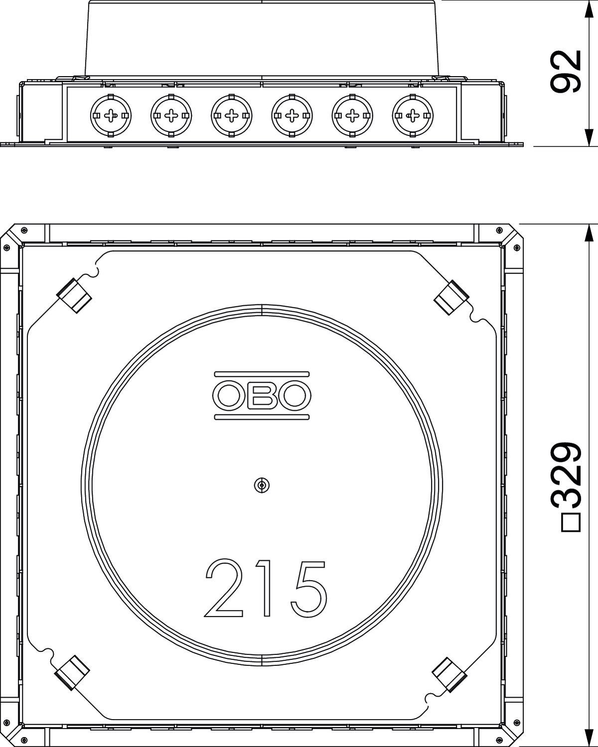 Cote d Ø 215 mm Dimension 329x329x92 Dimension nominale pour boîtier d'appareillages R4 Empreinte CO2 (GWP) du berceau à la porte 8,075 kg CO₂e / 1 Pièce Hauteur de chape max. 90 mm Hauteur de chape min. 65 mm Matériau Acier Surface galvanisé par bande - Tous les types