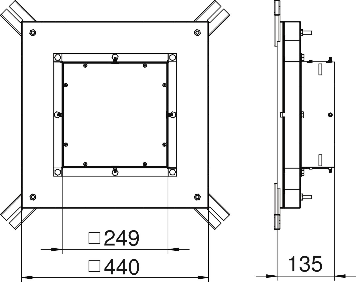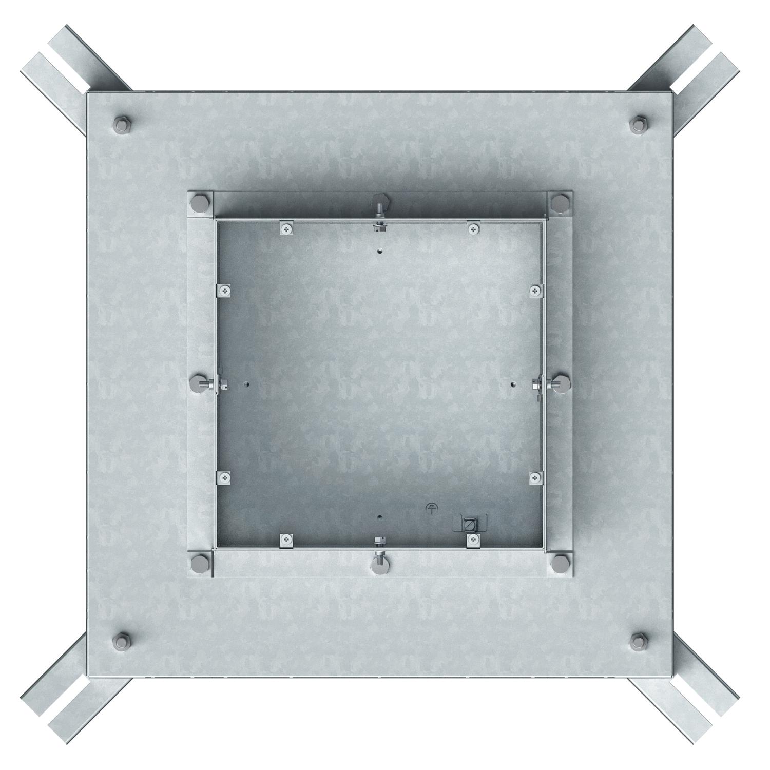 Description du produitBoîte de tirage pour conduits de hauteur 38 mm, préparée pour les largeurs de conduit de 250 et 350 mm.