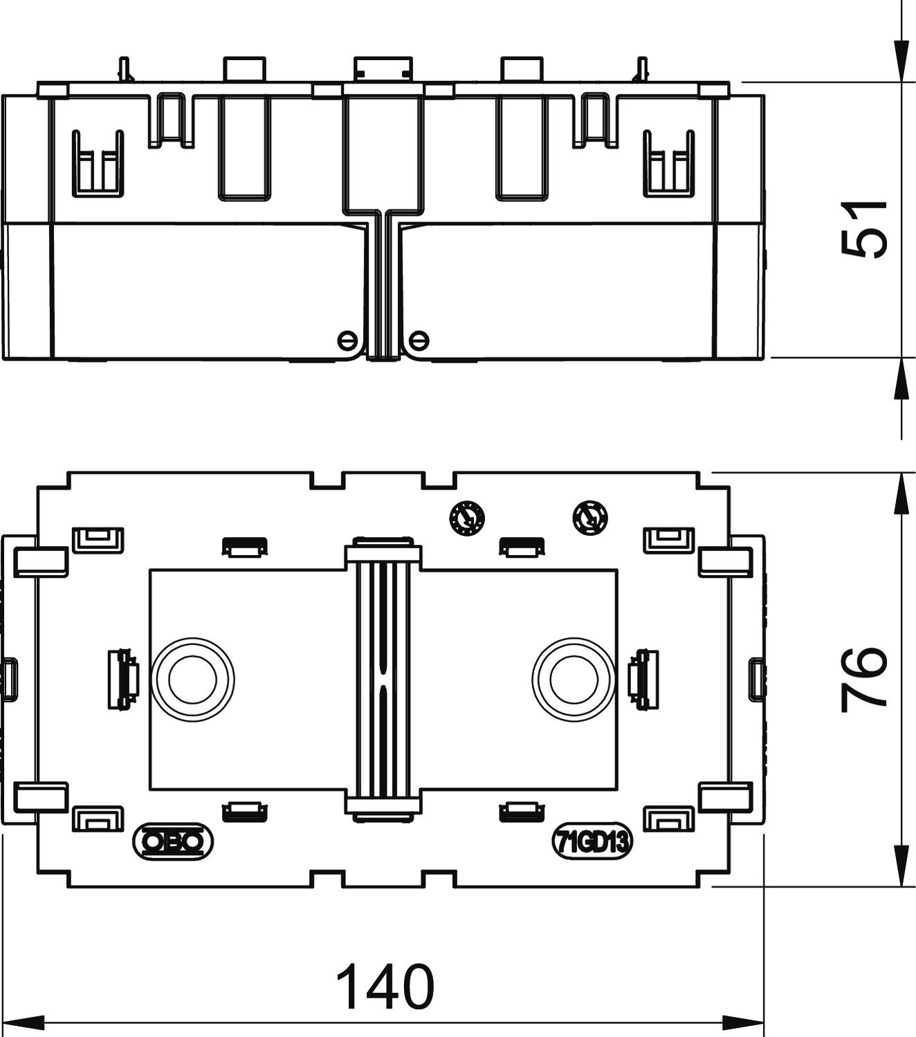Description du produitBoîtier d'appareillage double clipsable par l'avant pour système Modul 45®, avec socle rabattable et amovible si nécessaire pour le raccordement rapide des câbles, avec des ouvertures d'entrée pour des diamètres jusqu'à 14 mm.