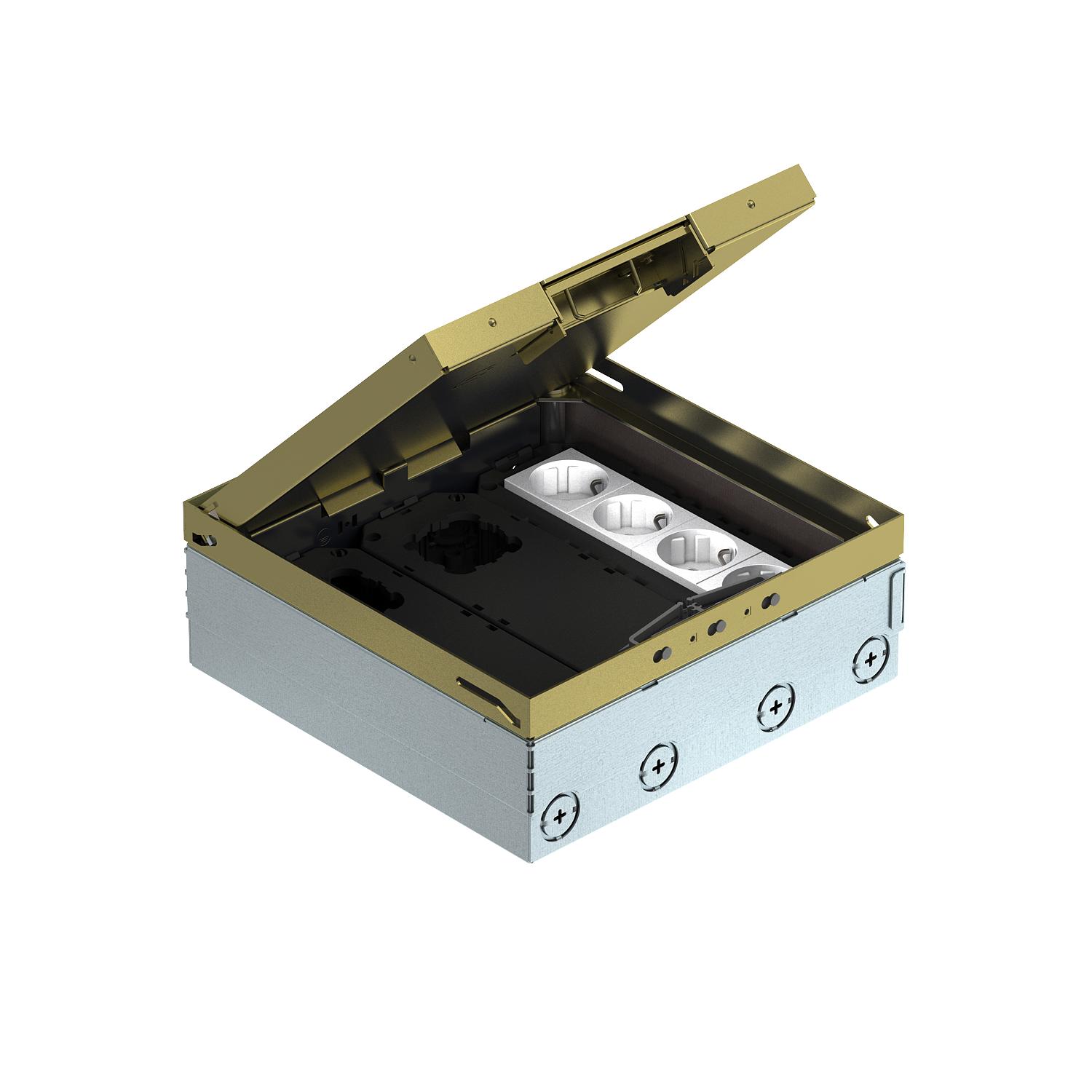 Boitier de sol complet UDHOME9, 2 prises doubles, laiton
