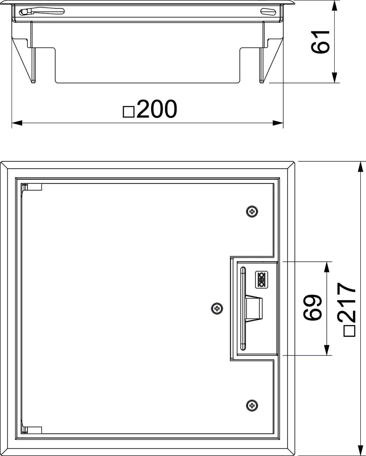 Boîtier de sol avec poignée étrier, 2 emplacements, pour la pose du support de montage MT4. Il est possible d'installer 2 plaques de recouvrement de forme APMT2