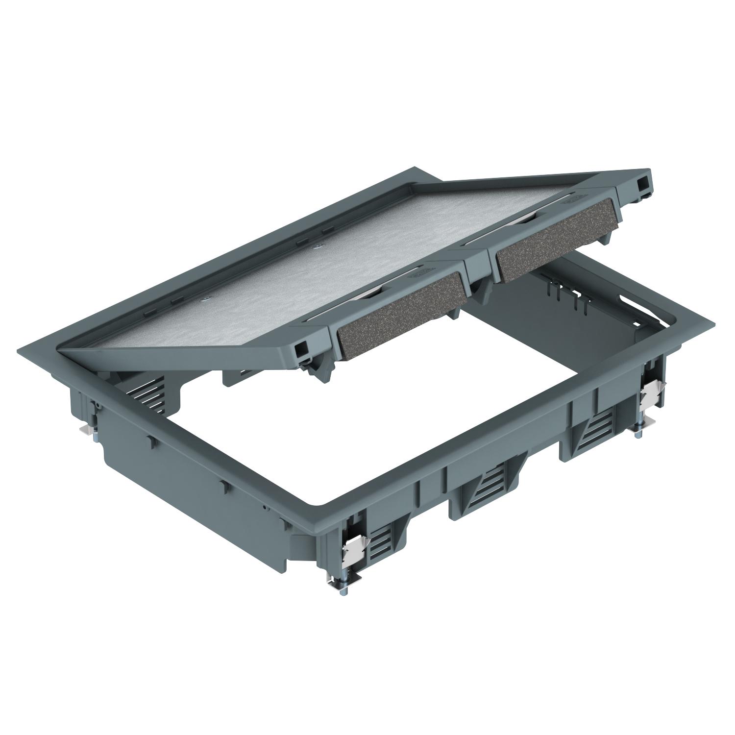 Description du produitBoîtier de sol avec poignée étrier pour 9 appareillages individuels Modul 45 maximum sur 3 supports universels UT3, insertion dans les systèmes de goulottes en intérieur.
