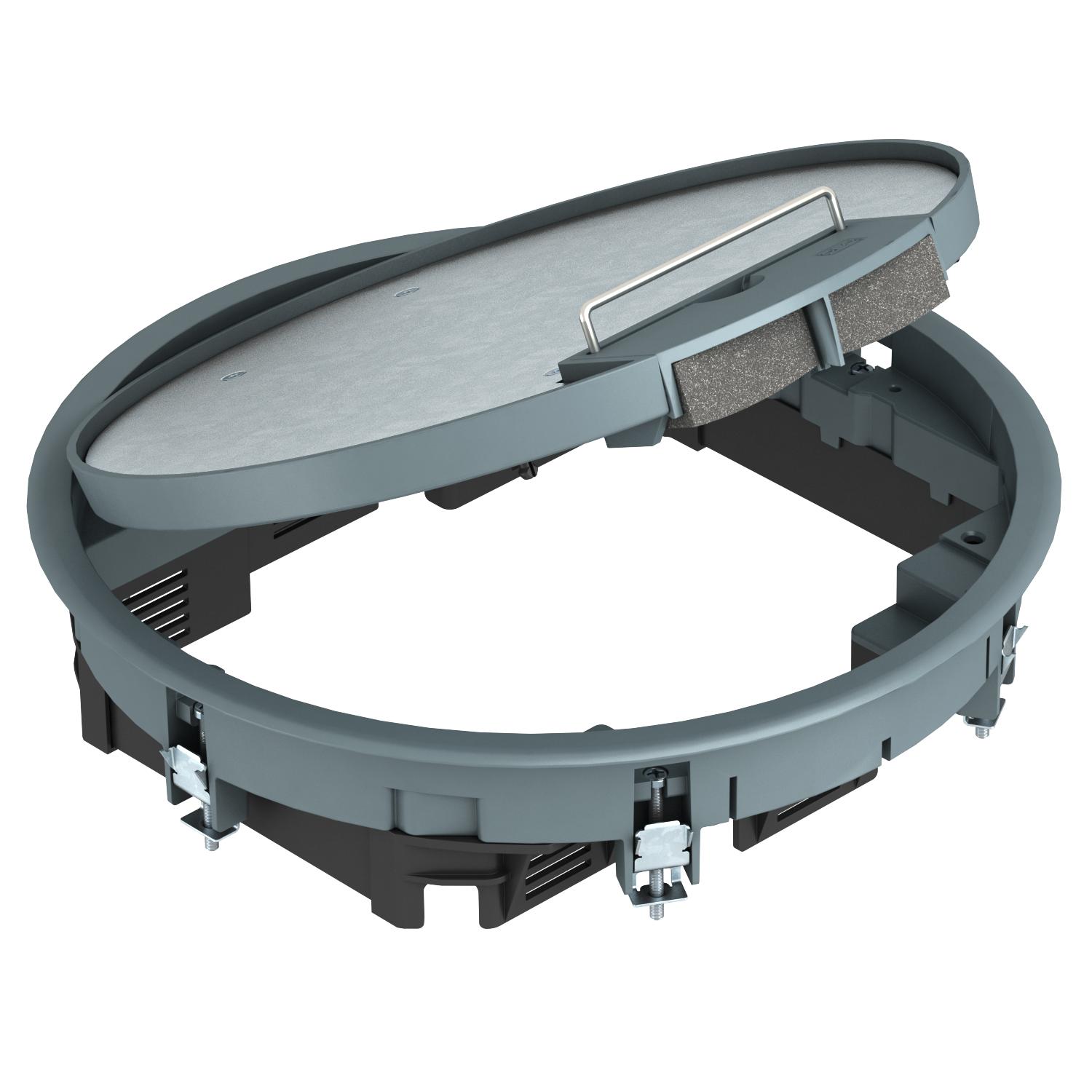 Avec évidement pour l'insertion du revêtement de sol oui Cadre de protection du revêtement de sol oui Charge verticale, grande surface jusqu'à 5 000 N Charge verticale, petite surface jusqu'à 3 000 N Compatible avec le conduit fermé affleurant avec la chape oui Compatible avec le conduit noyé dans la chape oui Convient pour goulotte noyée oui convient pour montage dans des faux-planchers oui Convient pour montage dans plancher technique oui Convient pour nettoyage à l'eau non Couleur gris fer ; RAL 7011 Diamètre de montage 275 Diamètre extérieur 294 mm Dimension Ø294x66 Dimension nominale pour boîtier d'appareillages R7 Empreinte CO2 (GWP) du berceau à la porte 8,3902 kg CO2e / 1 Pièce Entretien du sol sécher Épaisseur du revêtement de sol 5 mm Hauteur de plancher min. 78 mm Homologations NF Indice de protection (IP) en utilisation IP20 Indice de protection (IP) hors utilisation IP40 Indice de protection code IK IK08 Matériau Polyamide Mécanisme d'ouverture poignée étrier Modèle rond Modèle de cadre Cadre de protection de moquette Modèle pour charges lourdes non Modèle Sortie de câble Sortie de cordon pivotante Nombre d'appareillages montables 10 Nombre de paniers support appareillage 3 Plage de serrage D max. 36 mm Plage de serrage D min. 14 mm Possibilité d'installation du joint non Profondeur de montage 78 mm Support d'appareillage pour le logement de paniers appareillage oui Type du système d'encastrement UT3 / UT4 - Tous les types