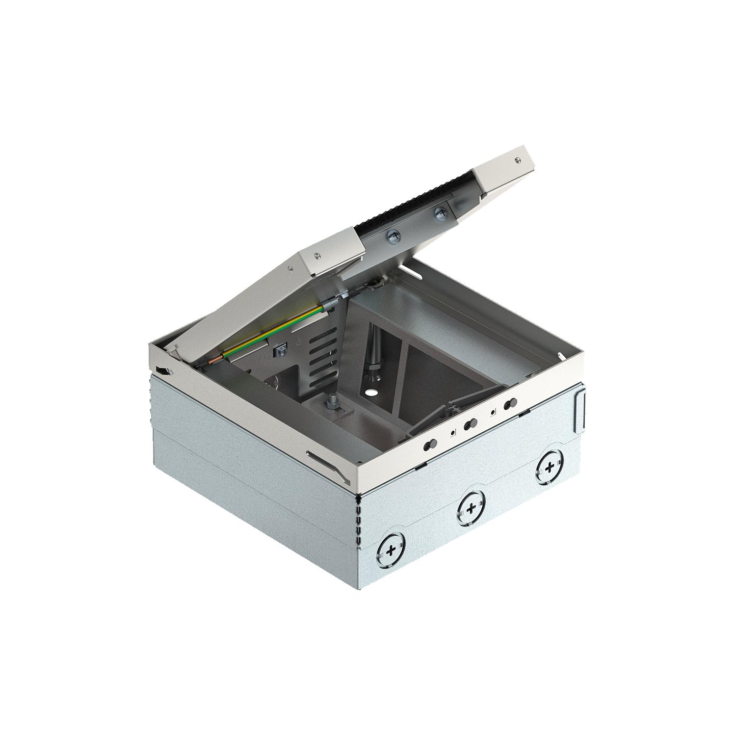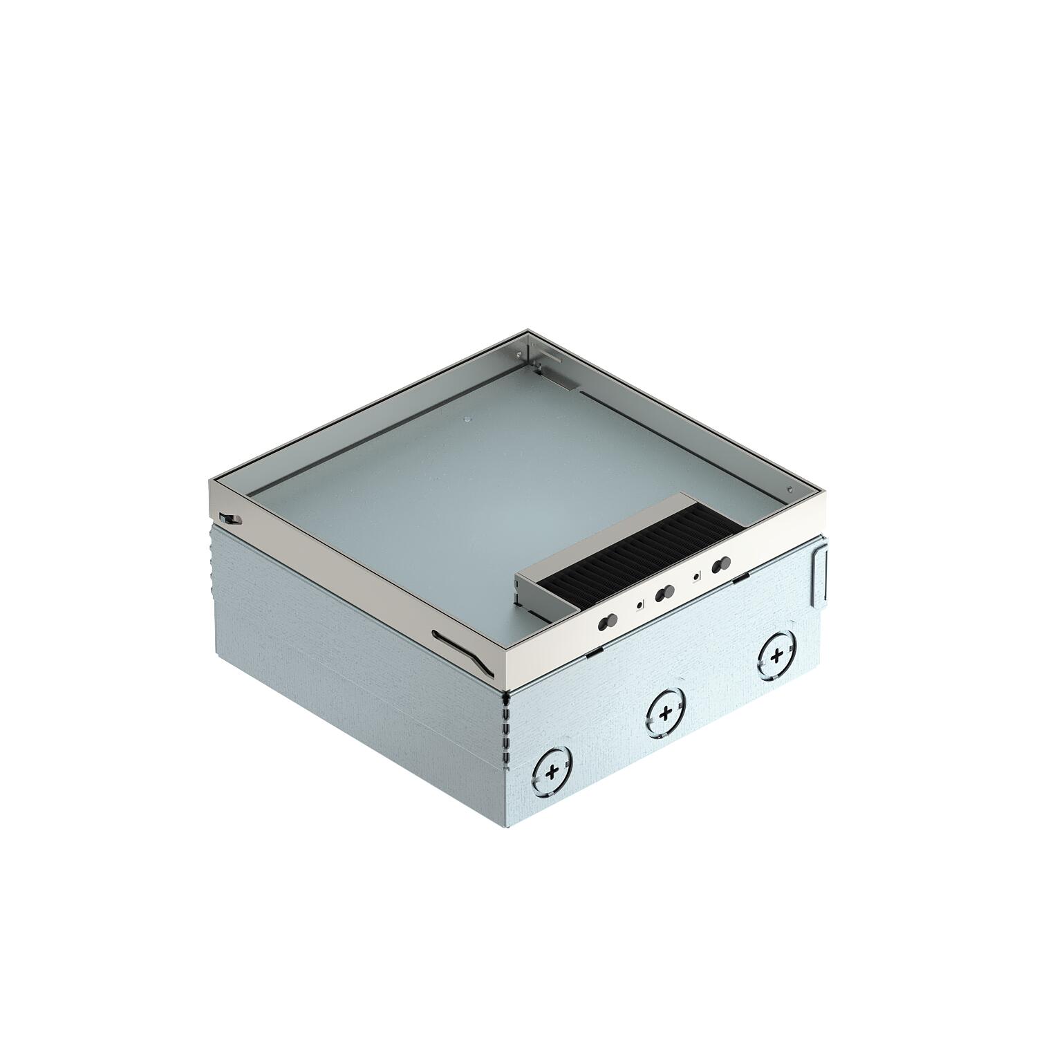 Description du produitBoîtier de sol carré pour une utilisation dans des planchers creux et des chapes nettoyées à sec à l'intérieur.