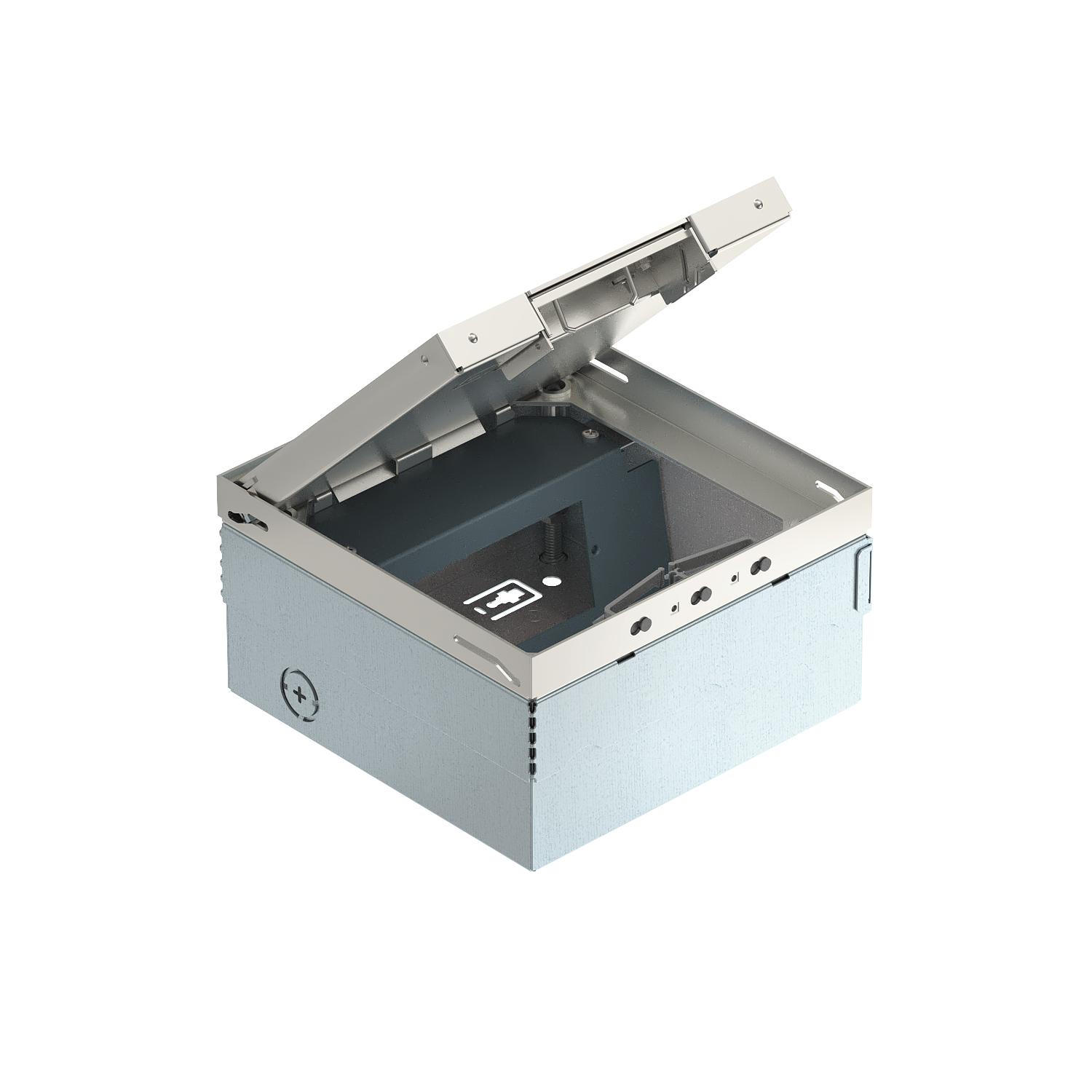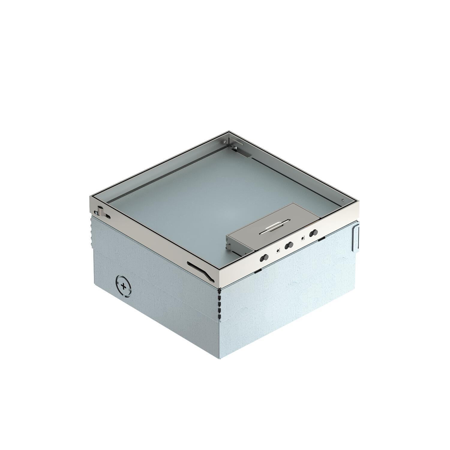 Description du produitBoîtier de sol carré pour quatre appareillages de fabrication italienne, pour une utilisation dans des planchers creux et des chapes nettoyés à sec à l'intérieur. Boîtier de montage avec pré-poinçonnages pour canalisations (M25). Couvercle réglable à l'aide de 4 supports de nivellement sur le rebord supérieur du revêtement de sol. Évidement de 15 mm pour l'insertion du revêtement de sol dans le couvercle rabattable. La hauteur d'encastrement est de 110 mm au minimum, la plage de nivellement 30 mm.