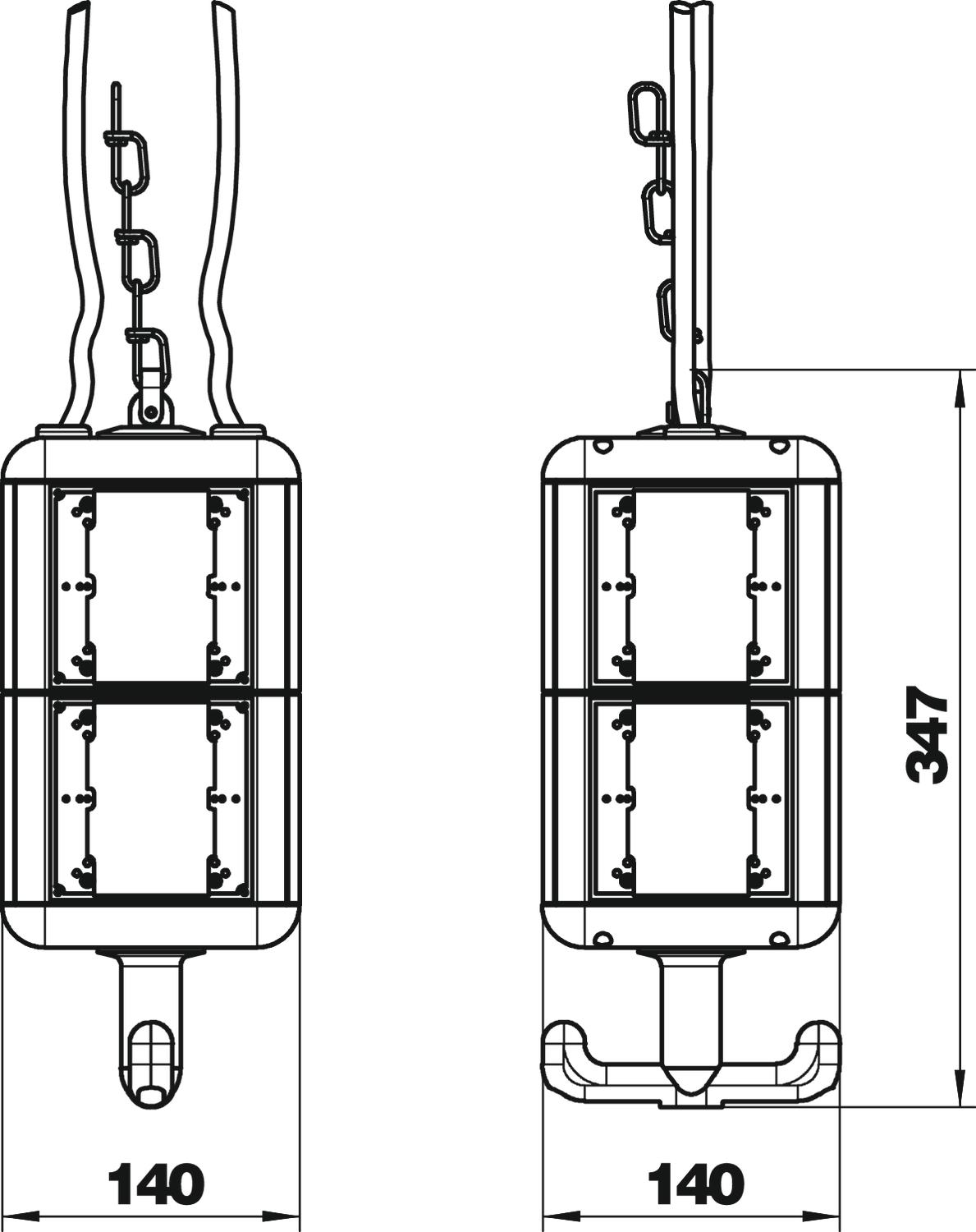 Description du produitBoîtier vide avec oeillets de suspension et poignée crochet, pour montage de 8 instruments électriques, avec cloison de séparation jointe. Sans plaque de recouvrement.
