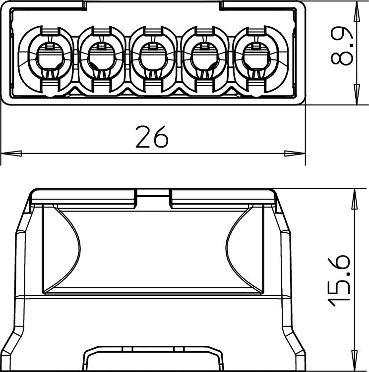 Avec leviers d'actionnement non Convient pour conducteurs flexibles non Convient pour conducteurs massifs non Convient pour conducteurs multifilaires oui Couleur gris clair; RAL 7035 Courant nominal 24 A Dimension 5x2,5mm² Hauteur 8,9 mm Largeur 15,6 mm Longueur 26 mm Matériau Polyamide Nombre de points de raccordement 5 Nombre de pôles 5 Plage de températures d’utilisation max. 90 °C Plage de températures d’utilisation min. -5 °C Résistant aux flammes selon la norme VDE 0471/DIN 695 partie 2-1, température de test 850 °C Section 5 conducteurs monofilaires de 0,5 mm² - 2,5 mm² 5 conducteurs multifilaires rigides de 1,5 mm² - 2,5 mm² mm² Section nominale max. 2,5 mm² Section nominale min. 0,5 mm² Section raccordable de conducteur à plusieurs fils max. 2,5 mm² Section raccordable de conducteur à plusieurs fils min. 1,5 mm² Section raccordable de conducteur à un fil max. 2,5 mm² Section raccordable de conducteur à un fil min. 0,5 mm² Tension nominale 450 V - Tous les types