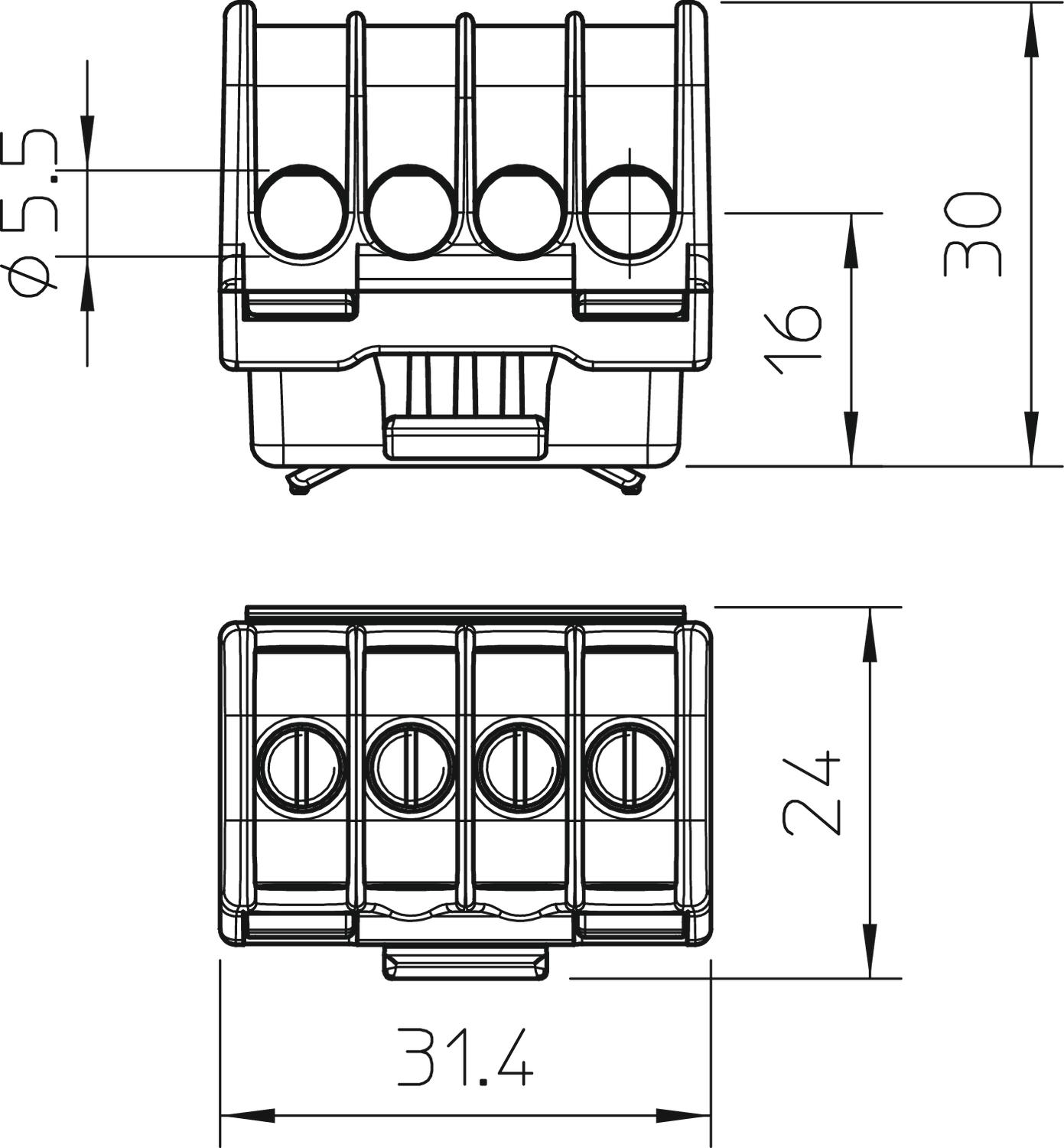 Description du produitBornes en laiton, vis en acier, galvanisées (passivation transparente), section nominale 6 ÷ 16 mm², tension nominale 400 V, 1 pôle, avec bornes à douilles max. Conducteurs raccordables par borne max. 4x16mm², 4x10mm², 8x6mm² et 12x4mm².