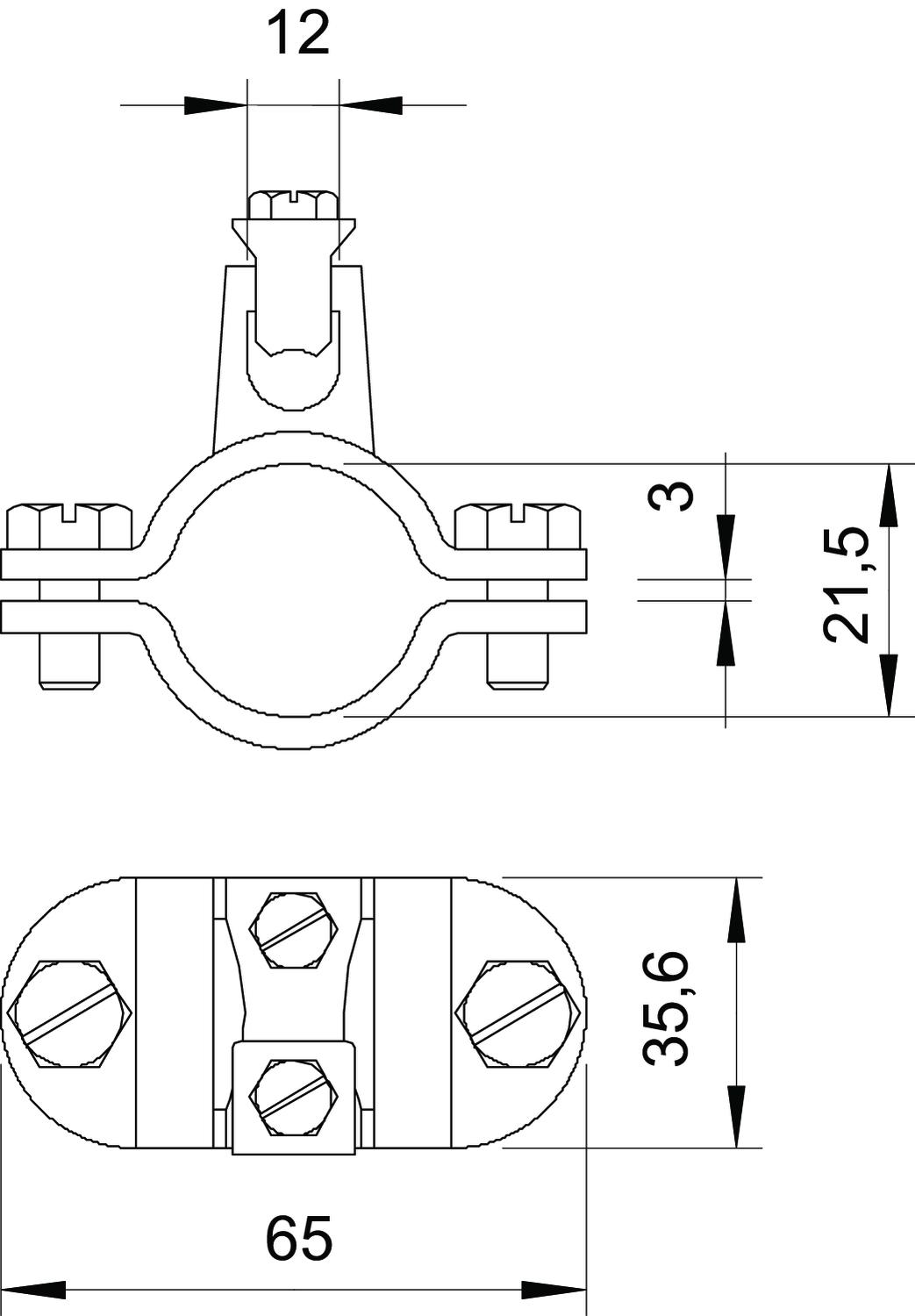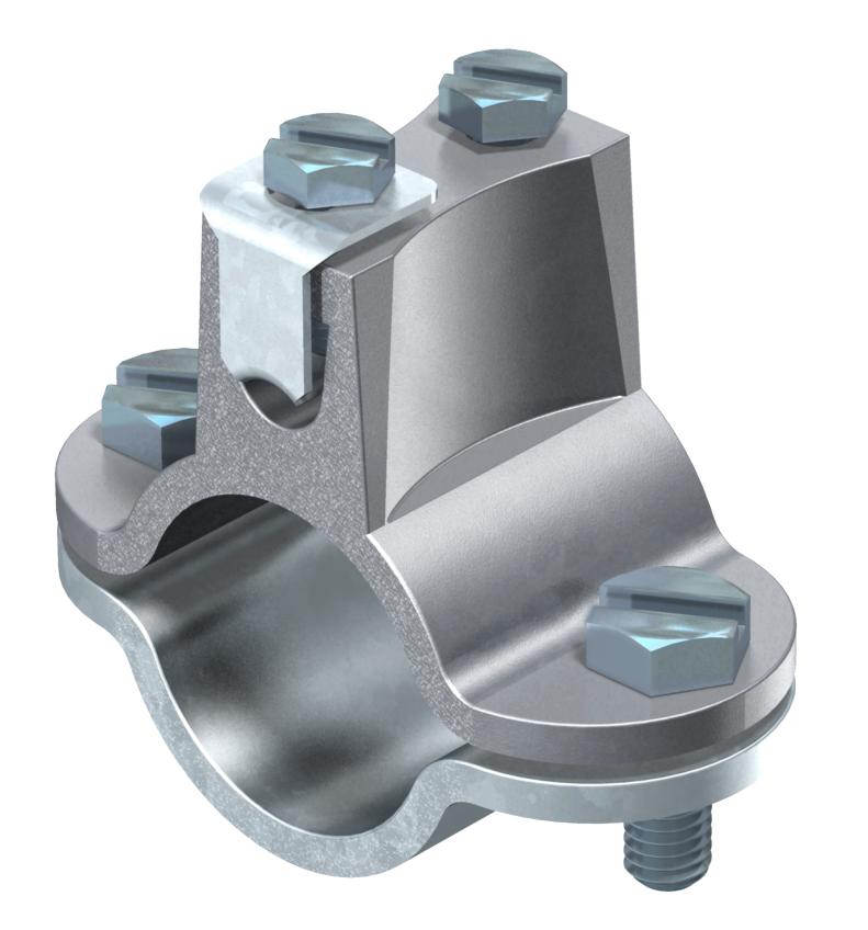 • Partie supérieure du collier avec point de serrage faisant corps en zinc moulé sous pression, partie inférieure du collier en acier galvanisé à chaud