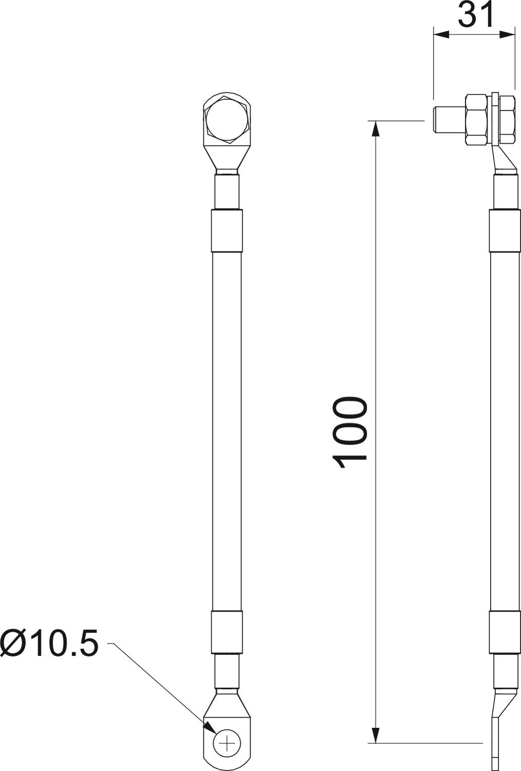 Description du produitCâble de raccordement résistant aux UV (cuivre 25 mm²) pour le montage de l'éclateur d'isolement EX d'OBO de type EX ISG sur des pièces/brides isolantes. Aux deux extrémités avec cosse pour vis M10, à une extrémité avec vis M10, écrou et rondelle-ressort.