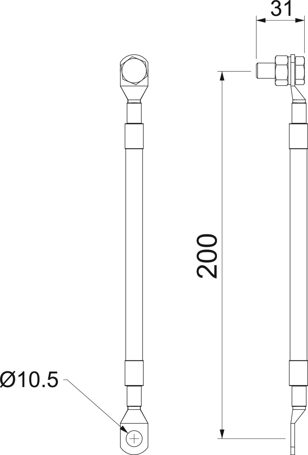 Description du produitCâble de raccordement résistant aux UV (cuivre 25 mm²) pour le montage de l'éclateur d'isolement EX d'OBO de type EX ISG sur des pièces/brides isolantes. Aux deux extrémités avec cosse pour vis M10, à une extrémité avec vis M10, écrou et rondelle-ressort.