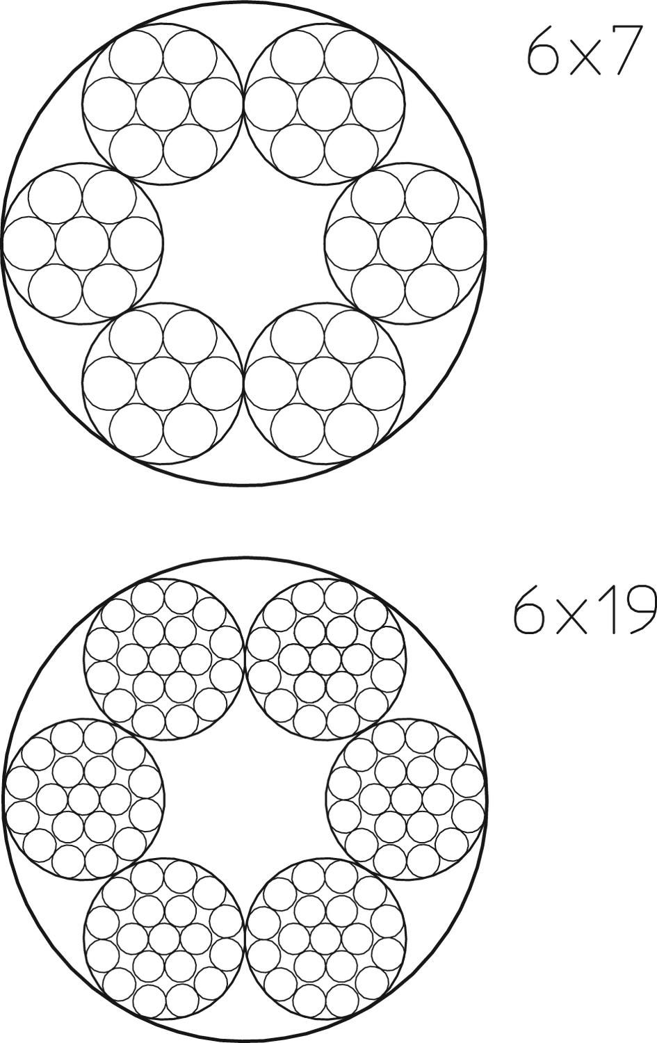 Ø de câble 8 - 10 mm : torons 6 x 19 selon DIN 3060.