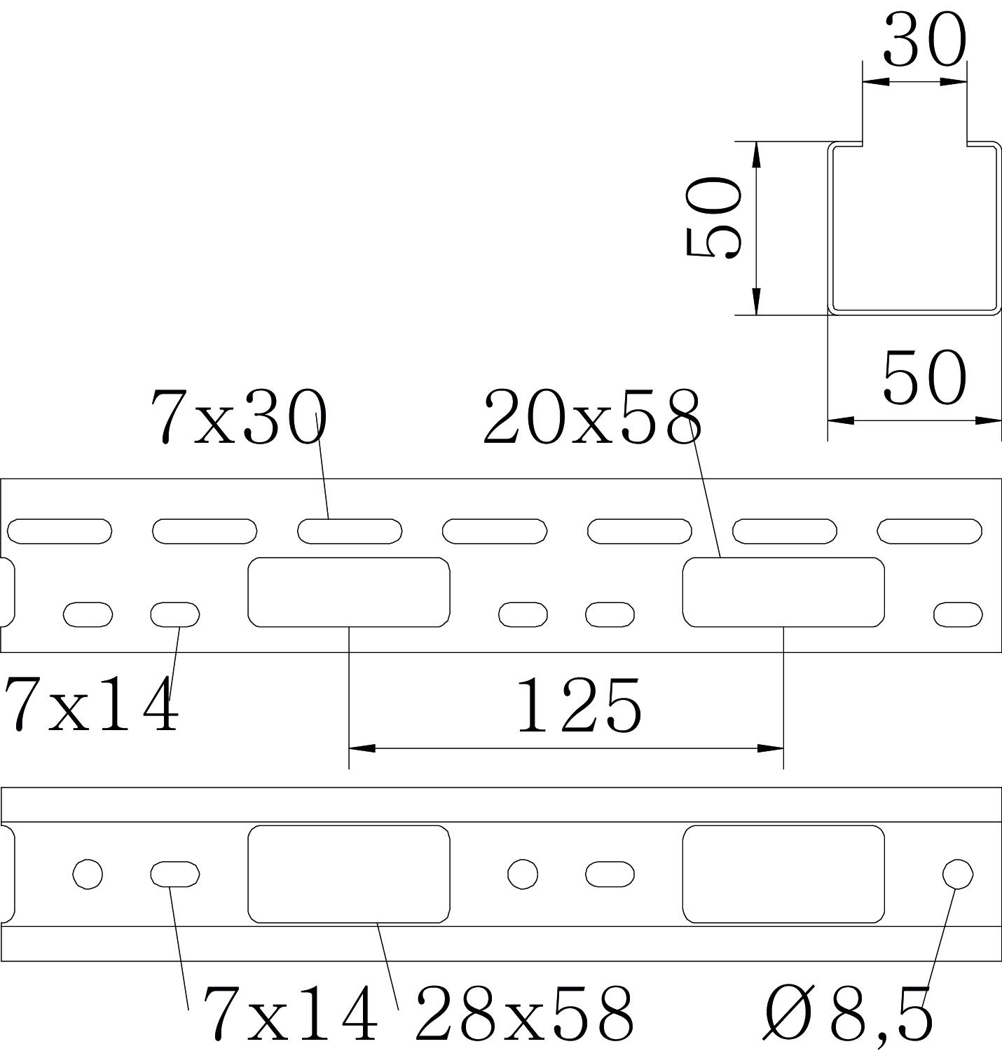 Acier inoxydable, teint non Cote B 50 mm Couleur acier inoxydable Dimension 50x50x3000 Distance entre supports 2,0m 1,2 kN/m Distance entre supports 1,0m 2,5 kN/m Distance entre supports 1,5m 2 kN/m Distance entre supports 2,5m 0,85 kN/m Distance entre supports 3,0m 0,5 kN/m Empreinte CO2 (GWP) du berceau à la porte 9,0439 kg CO2e / 1 Mètre Épaisseur de tôle 1,5 mm Hauteur 50 mm Largeur 50 mm Longueur 3000 mm Maintien en fonction non Matériau acier inoxydable 1.4301 Modèle longue portée non Perforation de montage dans le fond oui Perforation latérale oui Schéma de perçage NATO non Section utile 25 cm² Section utile 2500 mm² Surface nu, traité Version du connecteur sans raccord Caractéristiques techniques