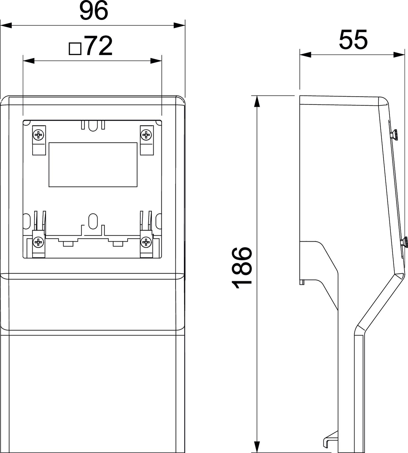 Couleur blanc pur; RAL 9010 Dimension 47x96x184 Empreinte CO2 (GWP) du berceau à la porte 0,3708 kg CO2e / 1 Pièce Hauteur 186 mm Indice de protection IP40 Indice de protection code IK IK06 Largeur 96 mm Longueur 55 mm Matériau Chlorure de polyvinyle Plage de températures d’utilisation max. 60 °C Plage de températures d’utilisation min. -5 °C - Tous les types