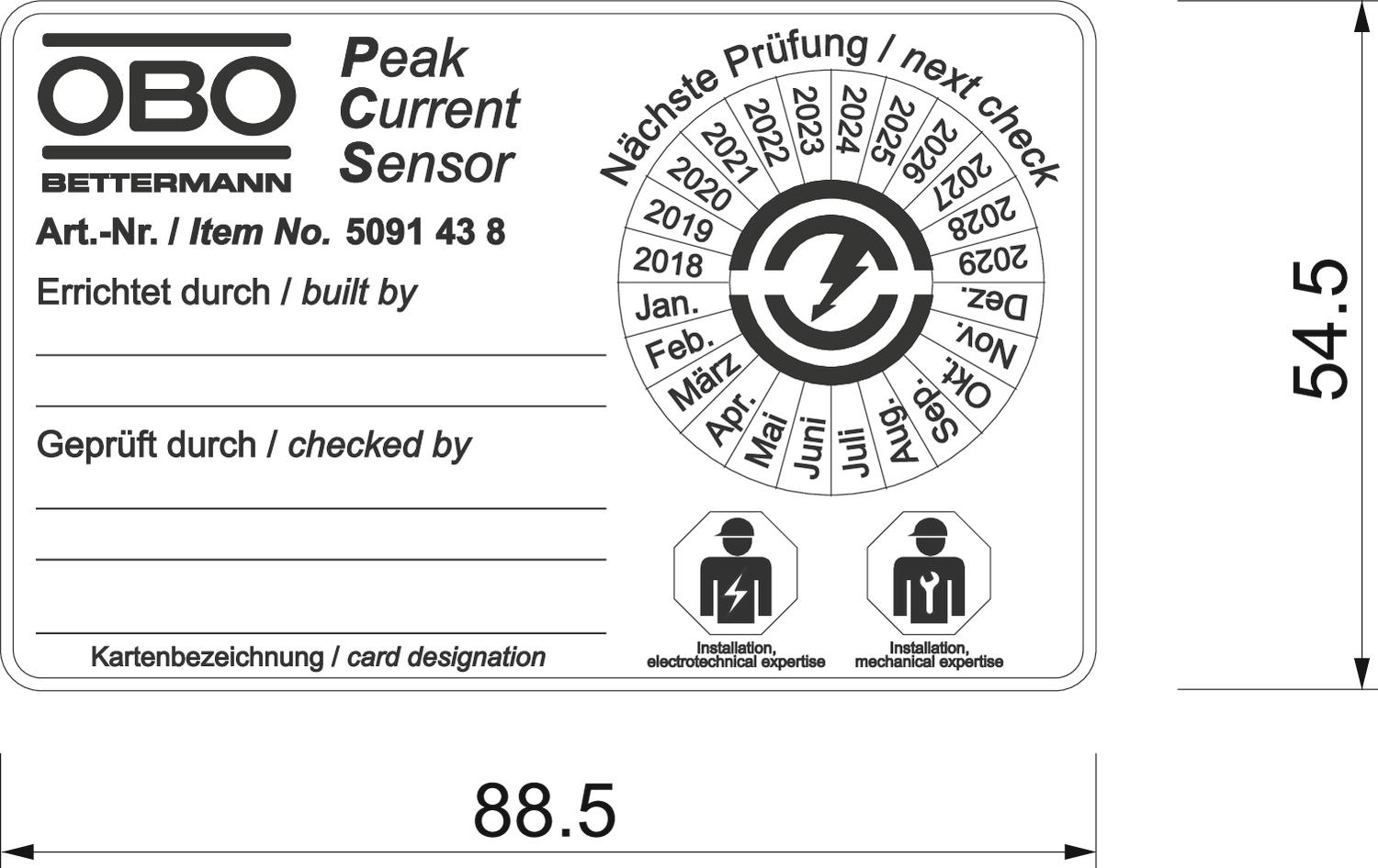 Description du produitCarte Peak-Current-Sensor (PCS) pour l'enregistrement des impacts directs de foudre et des surtensions. L'exploitant du système, l'entreprise spécialisée dans la protection contre la foudre ou un expert peut donc facilement vérifier en permanence si la foudre a frappé le système de protection contre la foudre et à quelle hauteur le dernier courant de foudre était en kA. Ici, le circuit imprimé de maintenance et les champs d'inscription servent aux travaux de maintenance de l'ensemble du système de protection contre la foudre, qui doivent être effectués à des intervalles définis conformément à la norme VDE 0185-305-3 (CEI/EN 62305-3).