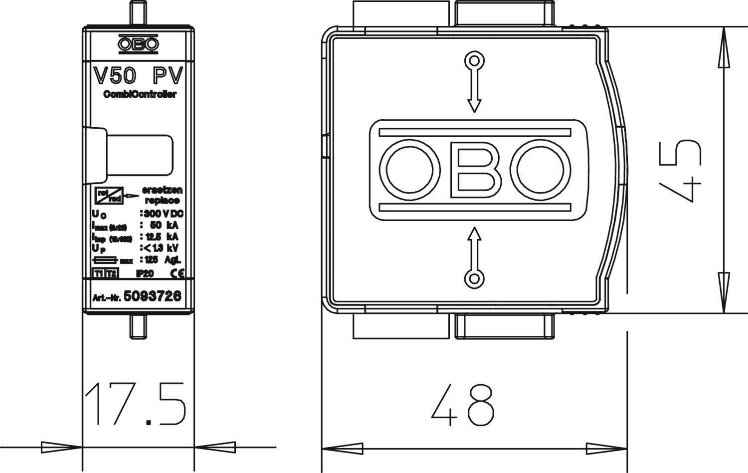 Fiche technique V50-B+C 0-300PV / 5093726 , 0.20MB , pdfCatalogue Surge protection , 28.42MB , pdfDéclaration de conformité UE V50-B+C 0-300PV / 5093726 , 0.18MB , pdfREACH Déclaration de conformité V50-B+C 0-300PV / 5093726 , 0.12MB , pdfRoHS Déclaration de conformité V50-B+C 0-300PV / 5093726 , 0.12MB , pdfAide à la sélection Protection contre les surtensions – Aide à la sélection OBO , 2.00MB , pdfAide à la sélection Aide à la sélection parafoudres , 2.00MB , pdfAucun texte d'appel d'offres n'est disponible pour ce produit
