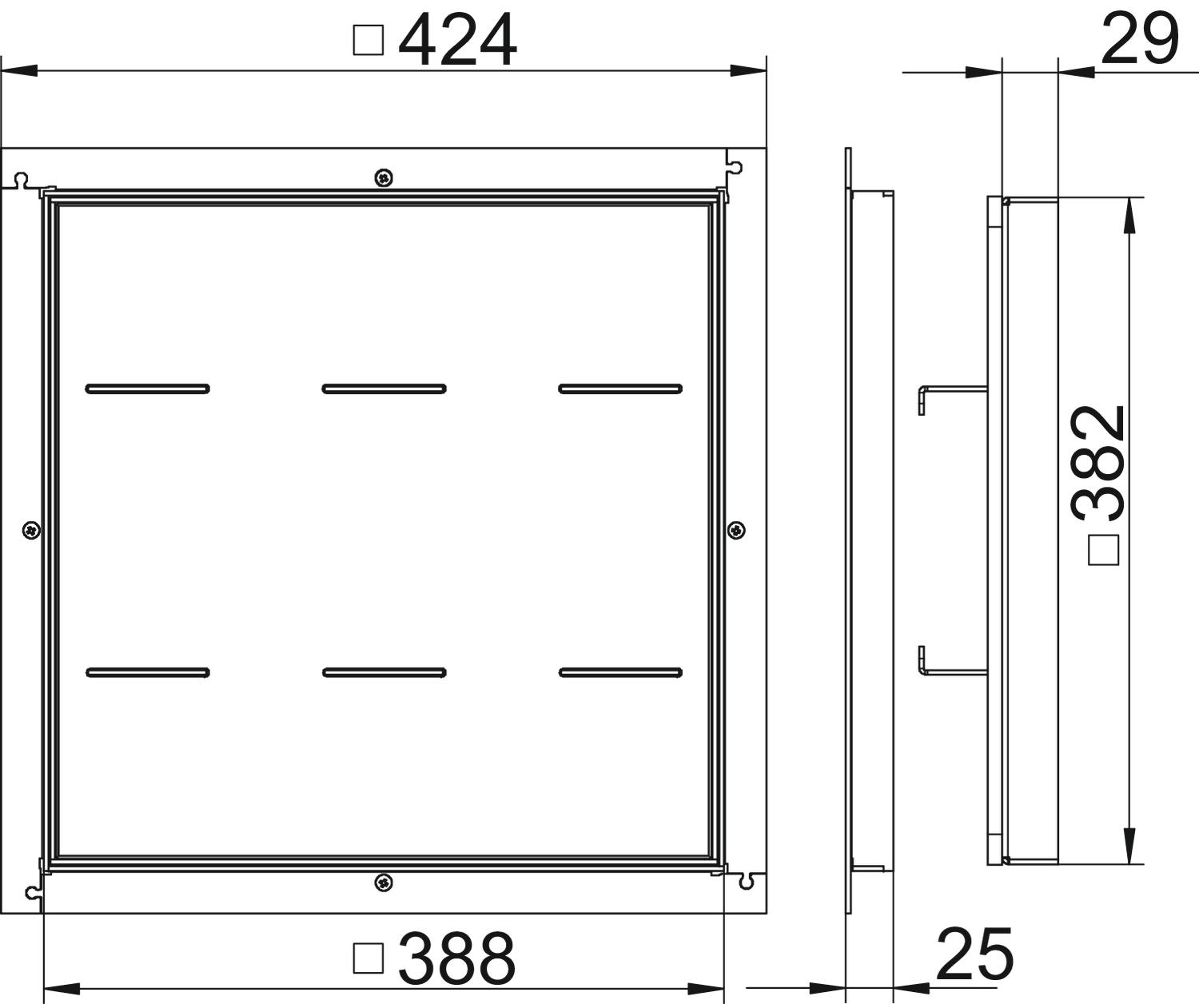 Classe pour charges lourdes 20 kN (OBO SL2) convient pour montage dans des faux-planchers oui Convient pour montage dans plancher technique oui Cote A 424 mm Cote B 388 mm Cote C 382 mm Dimension 383x383x25 Dimension h 25 mm Empreinte CO2 (GWP) du berceau à la porte 52,7103 kg CO2e / 1 Pièce Entretien du sol humide Épaisseur du revêtement de sol 19 mm Hauteur de chape min. 70 mm Hauteur de plancher min. 95 mm Indice de protection (IP) en utilisation IP00 Indice de protection (IP) hors utilisation IP44 Indice de protection code IK IK10 Largeur cote de montage 390 mm Longueur cote de montage 390 mm Matériau acier inoxydable 1.4301 Modèle pour charges lourdes oui Modèle Sortie de câble Aucune sortie de câble Support d'appareillage pour le logement de paniers appareillage non - Tous les types