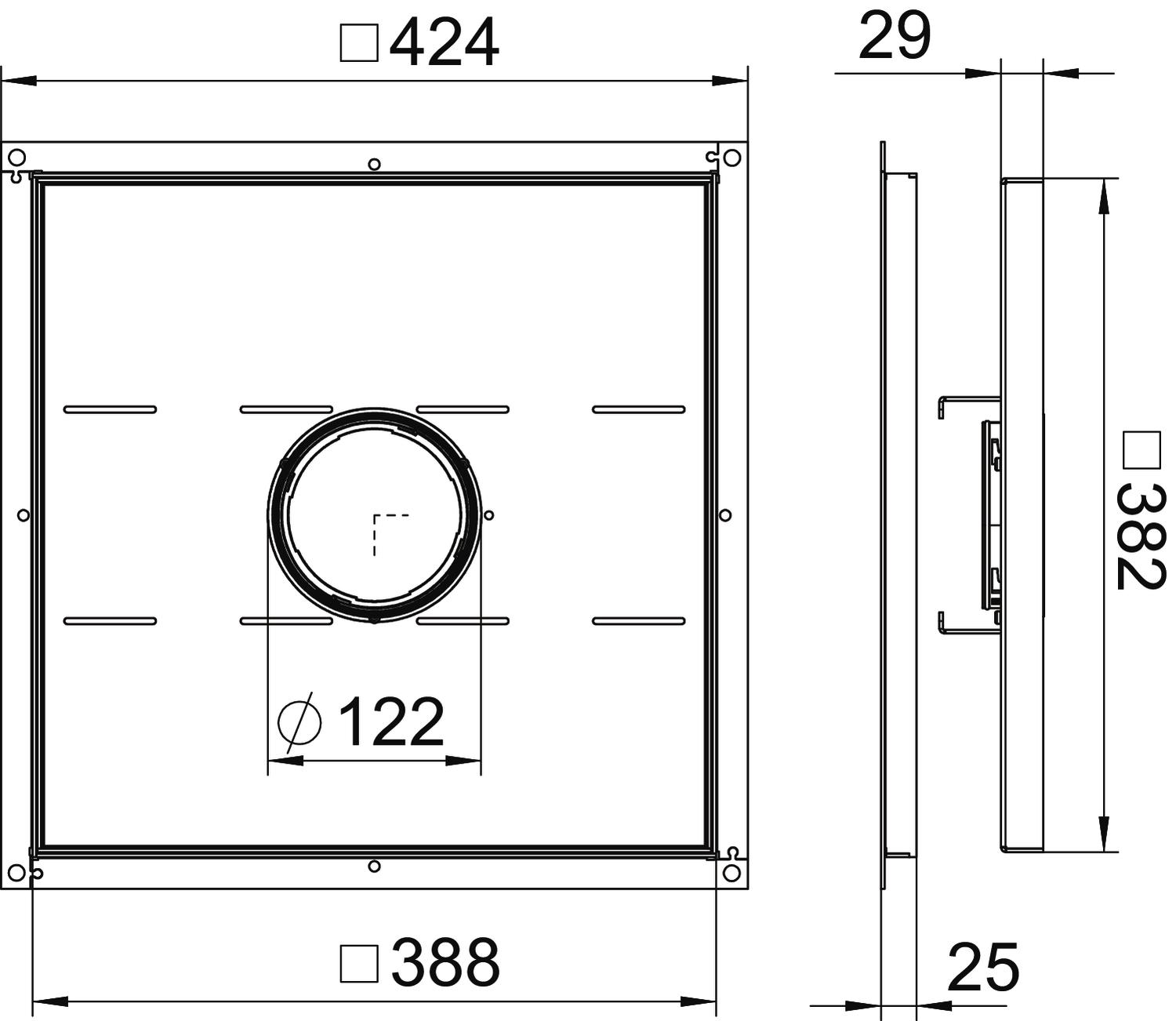 Cassette à cadre pour charges lourdes pour tube pour le montage d’appareillages dans la boîte sous plancher UZD350-3 dans des planchers nettoyés à l’eau ou à sec en intérieur. Classe de charge 2 jusqu'à 20 kN. Le tube n’est pas compris dans la livraison.