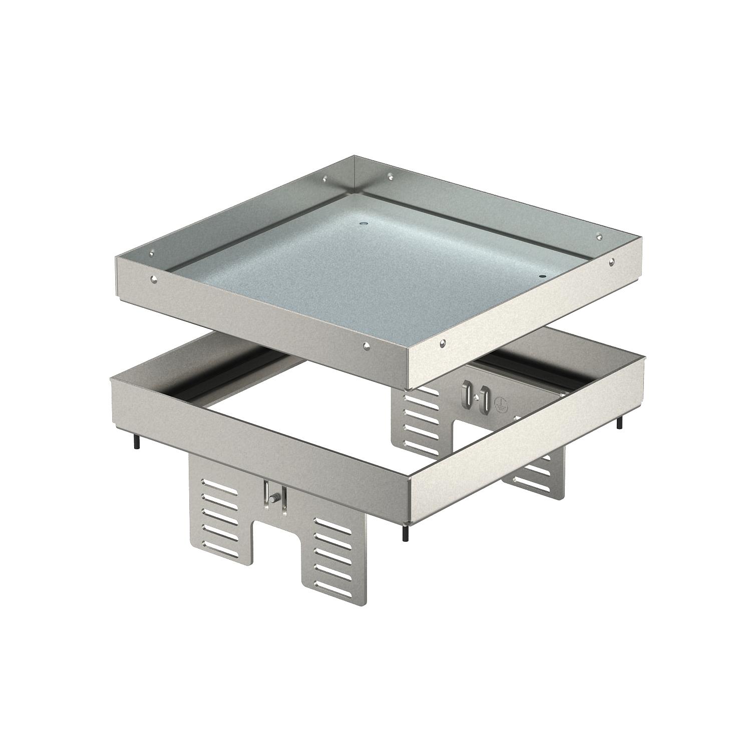 Description du produitCassette pleine réglable en hauteur et découplée par rapport au plancher pour la réalisation d'une trappe d'inspection de taille nominale 4 dans des planchers nettoyés à sec ou à l'eau en intérieur, pour le montage dans des boîtes sous plancher UZD250 ou UZD350 en association avec un couvercle de montage DUG.../4 ou dans des boîtes sous plancher UGD250-3/4 ou UGD350-3/4. Le montage s'effectue à l'aide d'équerres de nivellement (à commander séparément) dans le profilé d'encadrement en aluminium des boîtes de tirage. Convient uniquement aux revêtements de sol lisses.