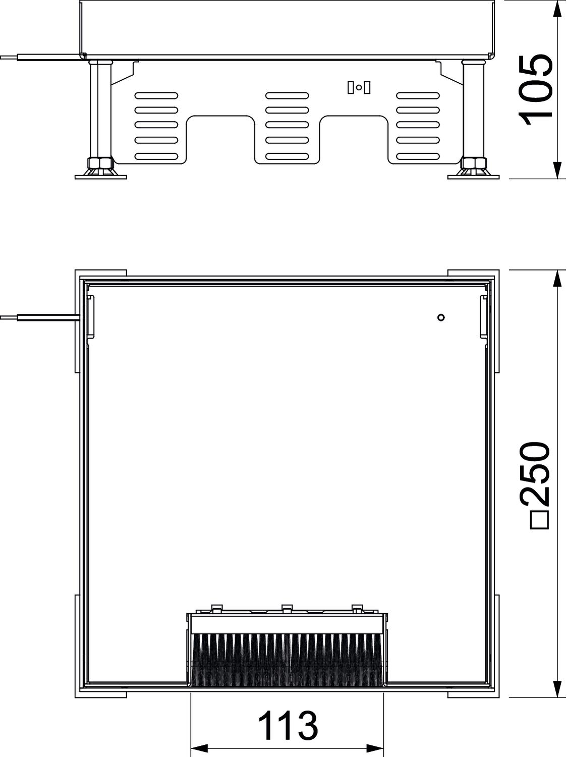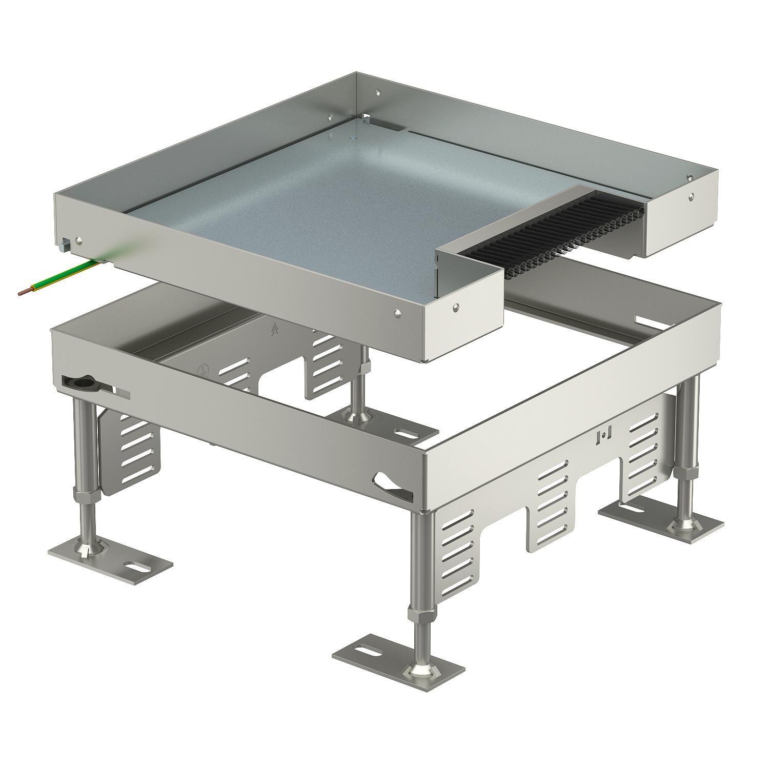 Description du produitCassette ajustable de dimension nominale 9 avec sortie de câble via un joint brosse pour la pose d'appareils dans des planchers à entretien à sec.