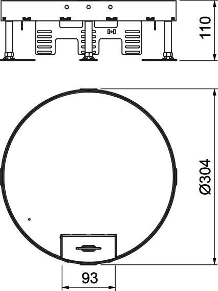 Cassette ronde réglable en hauteur, à 3 compartiments, avec sortie de cordon de dimension nominale 9 destinée au montage d’appareillages. Cassette adaptée à une utilisation dans des systèmes de goulottes, des faux-planchers et des planchers creux, dans des planchers nettoyés à sec en intérieur. Convient uniquement aux revêtements de sol lisses.