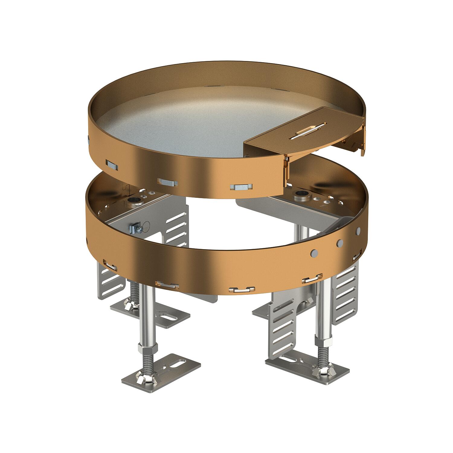 Cassette ajustable avec sortie de cordon, à 2 passages. Il est possible d'installer 2 plaques de recouvrement APMT2. Pour le montage de 2 supports universels UT3 pour 4 appareillages individuels avec bague-support/griffe de fixation ou 6 appareillages Module 45.