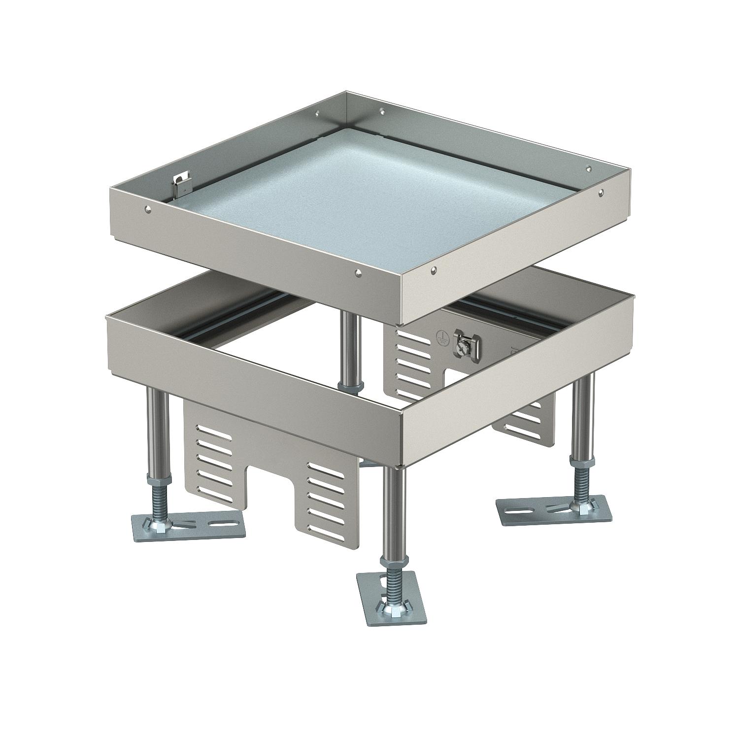 Description du produitCassette carrée pleine pour charges lourdes réglable en hauteur de taille nominale 4 pour la réalisation d'une trappe d'inspection. Montage dans les systèmes de goulottes, les faux-planchers et les planchers creux, dans des planchers nettoyés à l’eau ou à sec en intérieur. Classe de charge 1 jusqu'à 10 kN. Convient uniquement aux revêtements de sol lisses.