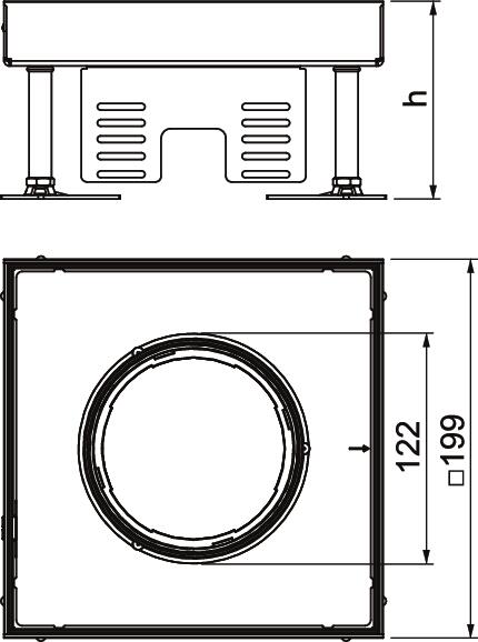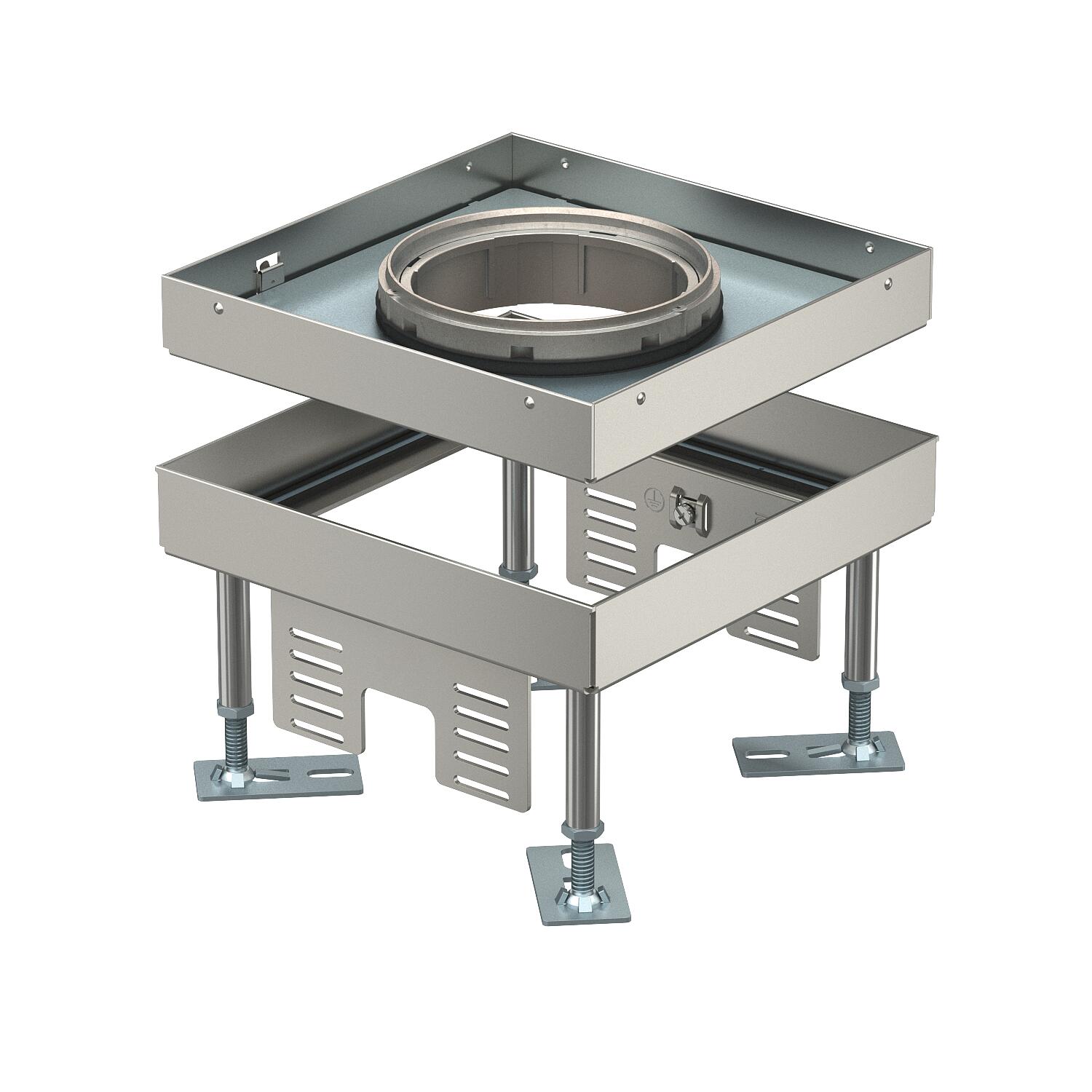 Description du produitCassette carrée pour charges lourdes réglable en hauteur pour tube de taille nominale 4 pour le montage d'appareillages dans des systèmes de goulottes, des faux-planchers et des planchers creux, dans des planchers nettoyés à l'eau ou à sec en intérieur. Classe de charge 1 jusqu'à 10 kN.