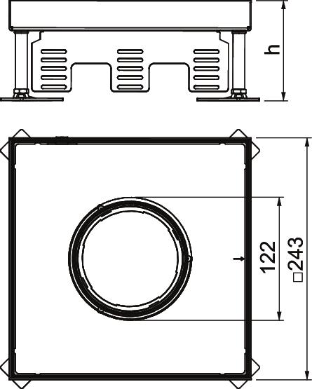 Cassette carrée pour charges lourdes réglable en hauteur pour tube de taille nominale 9 pour le montage d'appareillages dans des systèmes de goulottes, des faux-planchers et des planchers creux, dans des planchers nettoyés à l'eau ou à sec en intérieur. Classe de charge 1 jusqu'à 10 kN.