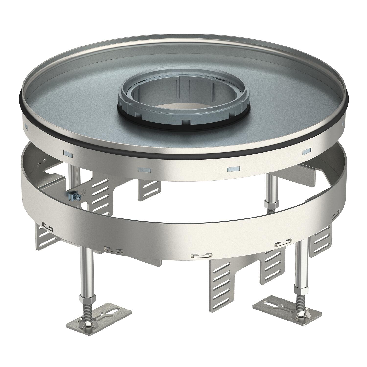 Cassette ronde pour charges lourdes réglable en hauteur, à 3 compartiments, pour tube de taille nominale 9. Pour montage dans des systèmes de goulottes, des faux-planchers et des planchers creux, dans des planchers nettoyés à l’eau ou à sec en intérieur. Classe de charge 2 jusqu'à 20 kN. Il est possible d’installer 3 plaques de recouvrement APMT5.