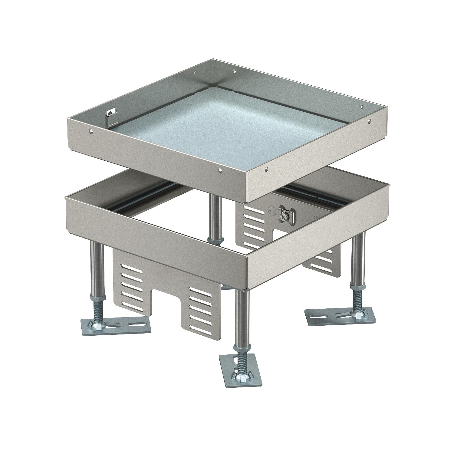 Description du produitCassette carrée pleine réglable en hauteur de taille nominale 4 pour la réalisation d'une trappe d'inspection dans les systèmes de goulottes, les faux-planchers et les planchers creux, dans des planchers nettoyés à l'eau ou à sec en intérieur. Convient uniquement aux revêtements de sol lisses. Indice de protection : IP X5.