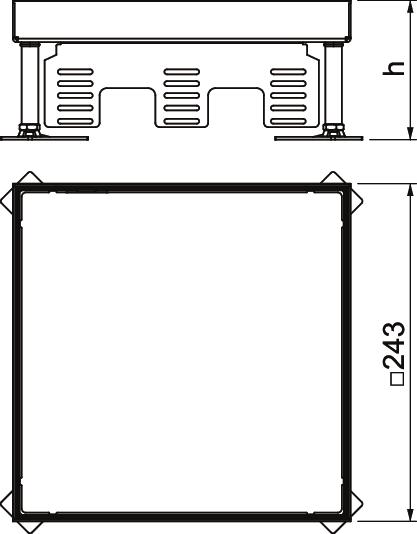 Charge verticale, grande surface jusqu'à 5 000 N Charge verticale, petite surface jusqu'à 3 000 N convient pour montage dans des faux-planchers oui Convient pour montage dans plancher technique oui Découpe de sol/Ouverture de montage 244x244 Découplable non Dimension 243x243x100 Dimension h 105 mm Dimension nominale pour boîtier d'appareillages 9 Empreinte CO2 (GWP) du berceau à la porte 13,5476 kg CO2e / 1 Pièce Entretien du sol humide Épaisseur du revêtement de sol 20 mm Hauteur 105 mm Hauteur de plancher max. 150 mm Hauteur de plancher min. 105 mm Homologations NF Indice de protection (IP) en utilisation IP00 Indice de protection (IP) hors utilisation IP55 Indice de protection code IK IK10 Largeur 243 mm Largeur cote de montage 244 mm Longueur 243 mm Longueur cote de montage 244 mm Matériau laiton Modèle carré Modèle pour charges lourdes non Modèle Sortie de câble Aucune sortie de câble Nombre de supports universels 3 x UT4 Norme EN 50085-2-2 Plage de réglage max. 150 mm Plage de réglage min. 105 mm Profondeur de montage 105 mm Support d'appareillage pour le logement de paniers appareillage non Type du système d'encastrement UT4 - Tous les types