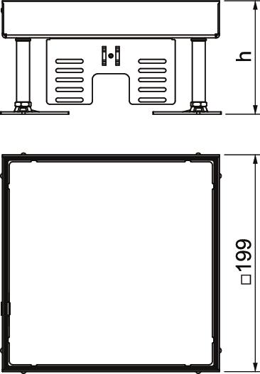 Charge verticale, grande surface jusqu'à 5 000 N Charge verticale, petite surface jusqu'à 3 000 N convient pour montage dans des faux-planchers oui Convient pour montage dans plancher technique oui Découpe de sol/Ouverture de montage 201x201 Découplable non Dimension 199x199x105 Dimension h 110 mm Dimension nominale pour boîtier d'appareillages 4 Empreinte CO2 (GWP) du berceau à la porte 10,4942 kg CO2e / 1 Pièce Entretien du sol humide Épaisseur du revêtement de sol 25 mm Hauteur 110 mm Hauteur de plancher max. 155 mm Hauteur de plancher min. 110 mm Homologations NF Indice de protection (IP) en utilisation IP00 Indice de protection (IP) hors utilisation IP55 Indice de protection code IK IK10 Largeur 199 mm Largeur cote de montage 201 mm Longueur 199 mm Longueur cote de montage 201 mm Matériau laiton Modèle carré Modèle pour charges lourdes non Modèle Sortie de câble Aucune sortie de câble Nombre de supports universels 2 x UT3 Norme EN 50085-2-2 Plage de réglage max. 155 mm Plage de réglage min. 110 mm Profondeur de montage 110 mm Support d'appareillage pour le logement de paniers appareillage non Type du système d'encastrement UT3 - Tous les types