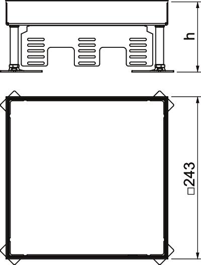 Charge verticale, grande surface jusqu'à 5 000 N Charge verticale, petite surface jusqu'à 3 000 N convient pour montage dans des faux-planchers oui Convient pour montage dans plancher technique oui Découpe de sol/Ouverture de montage 244x244 Découplable non Dimension 243x243x105 Dimension h 110 mm Dimension nominale pour boîtier d'appareillages 9 Empreinte CO2 (GWP) du berceau à la porte 14,3726 kg CO2e / 1 Pièce Entretien du sol humide Épaisseur du revêtement de sol 25 mm Hauteur 110 mm Hauteur de plancher max. 155 mm Hauteur de plancher min. 110 mm Homologations NF Indice de protection (IP) en utilisation IP00 Indice de protection (IP) hors utilisation IP55 Indice de protection code IK IK10 Largeur 243 mm Largeur cote de montage 244 mm Longueur 243 mm Longueur cote de montage 244 mm Matériau laiton Modèle carré Modèle pour charges lourdes non Modèle Sortie de câble Aucune sortie de câble Nombre de supports universels 3 x UT4 Norme EN 50085-2-2 Plage de réglage max. 155 mm Plage de réglage min. 110 mm Profondeur de montage 110 mm Support d'appareillage pour le logement de paniers appareillage non Type du système d'encastrement UT4 - Tous les types