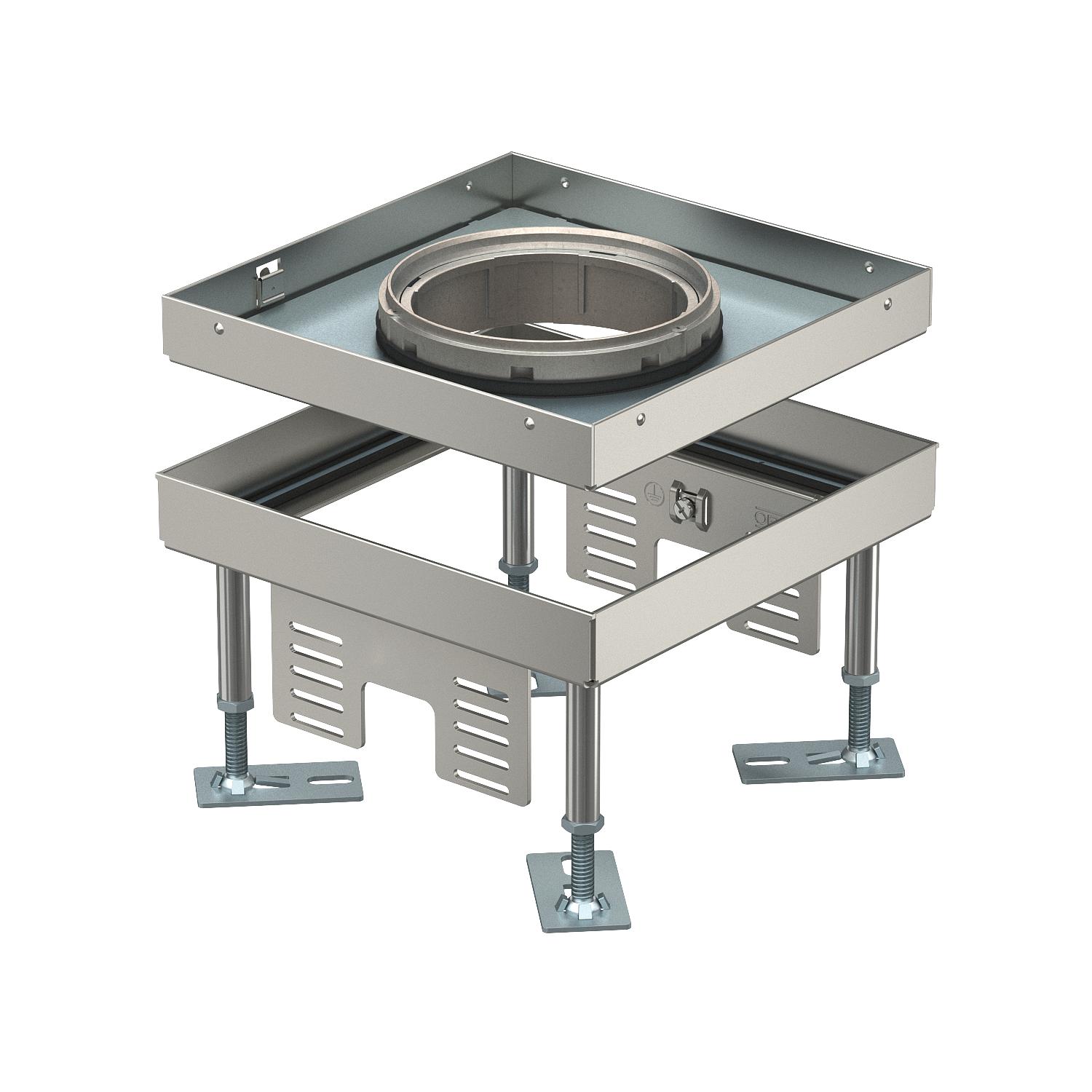 Description du produitCassette carrée réglable en hauteur pour tube de taille nominale 4 pour le montage d'appareillages dans des systèmes de goulottes, des faux-planchers et des planchers creux, dans des planchers nettoyés à l'eau ou à sec en intérieur. Indice de protection : IP X5.